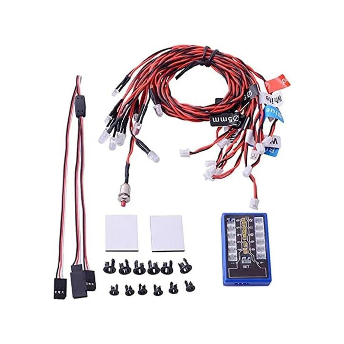 Globact Rc Faros delanteros para coche, luz trasera Rc para camión, luces LED intermitentes, 12 LED, 5 modos de funcionamiento para camiones de 110 Rc, Crawler, OffRoad, carreras deportivas