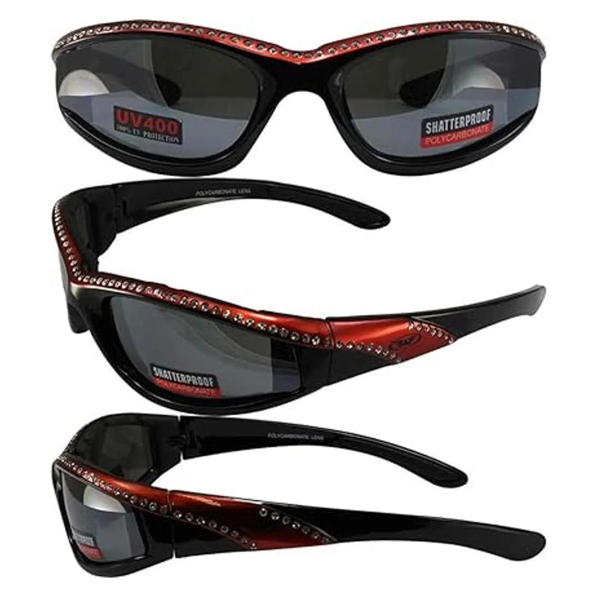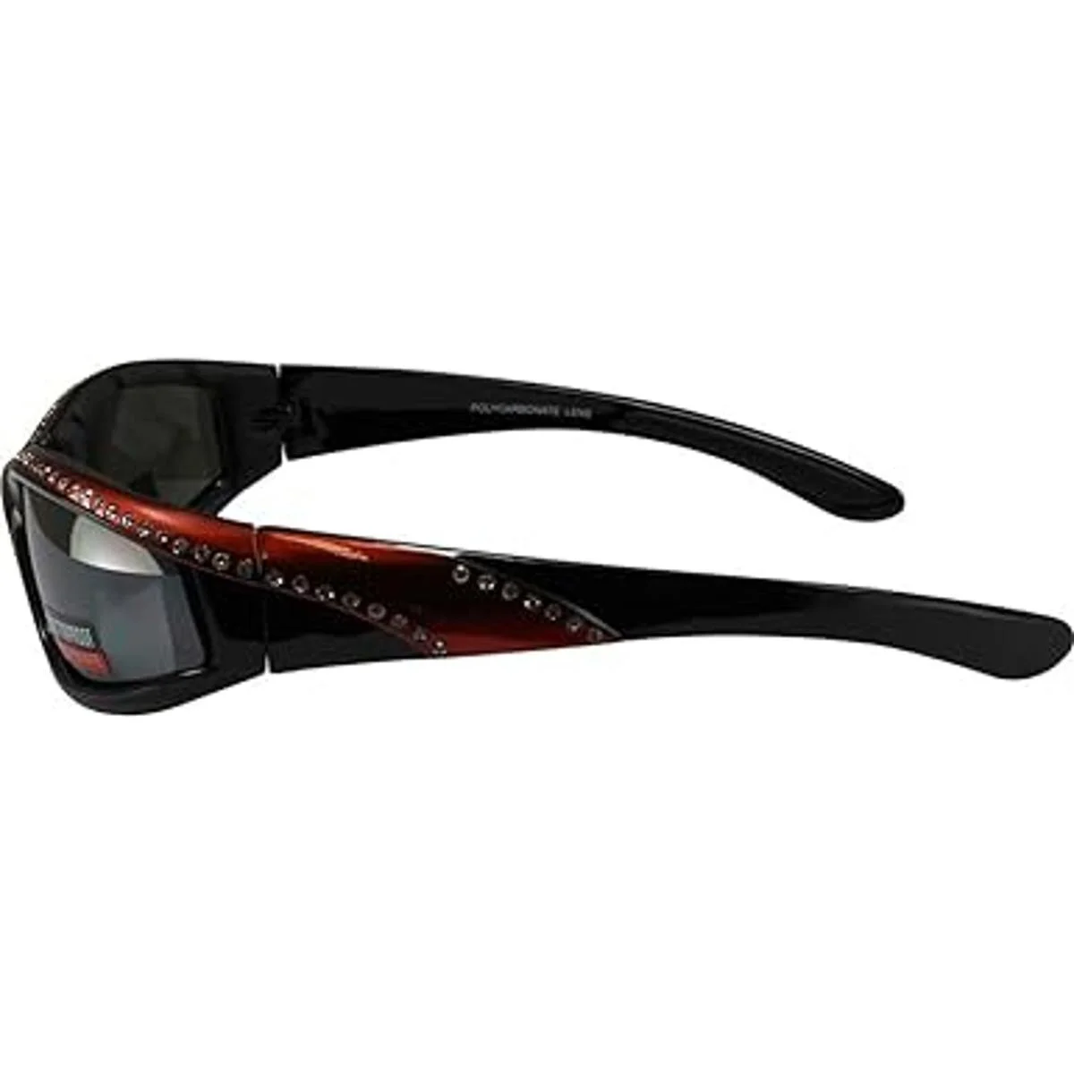 Global Vision Marilyn 11 Gafas de sol para motocicleta, color negro y naranja brillante con diamantes de imitación