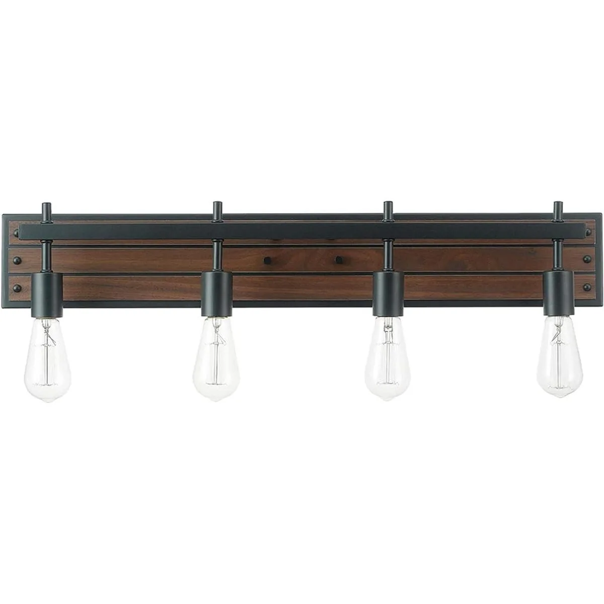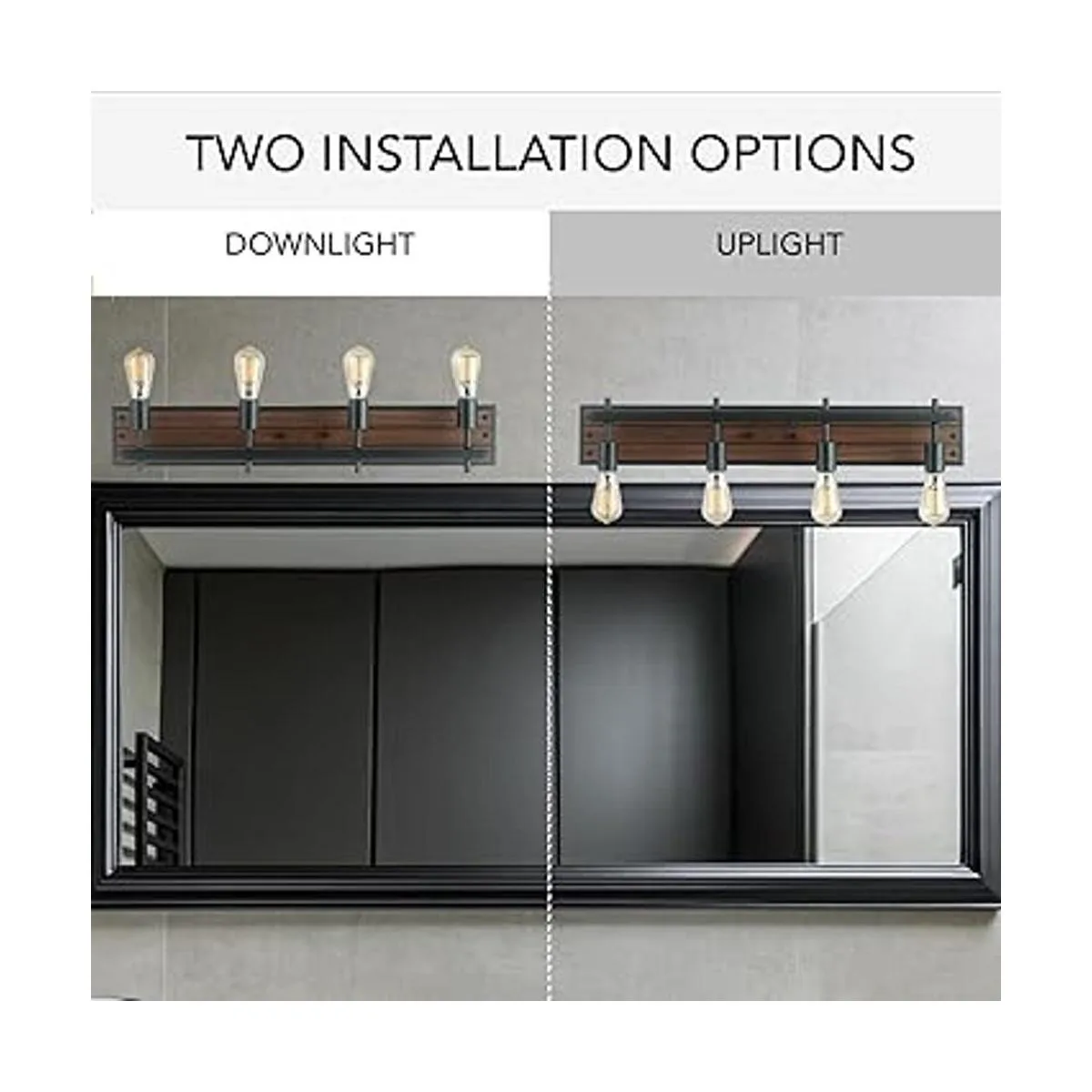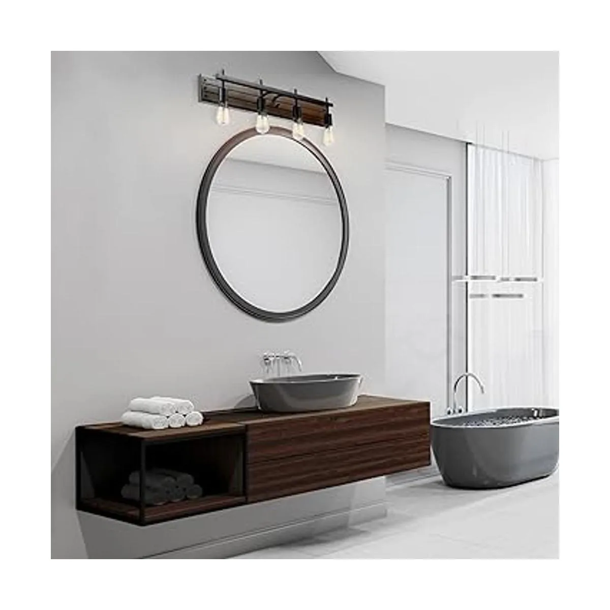 Globe Electric 52058 Lámpara de tocador de 4 luces, acabado de madera sintética, detalles negros mate, accesorio de sala de belleza, luces de baño sobre espejo, enchufe base E26, iluminación de maquillaje, luces de pared para sala de estar