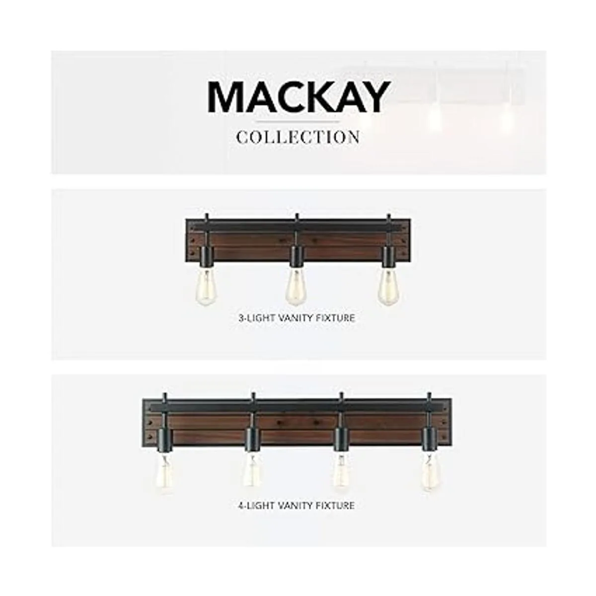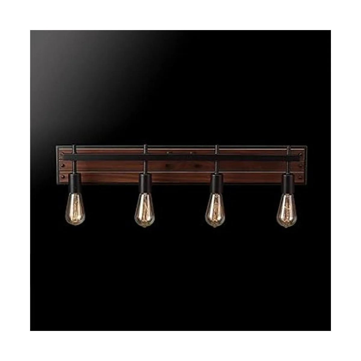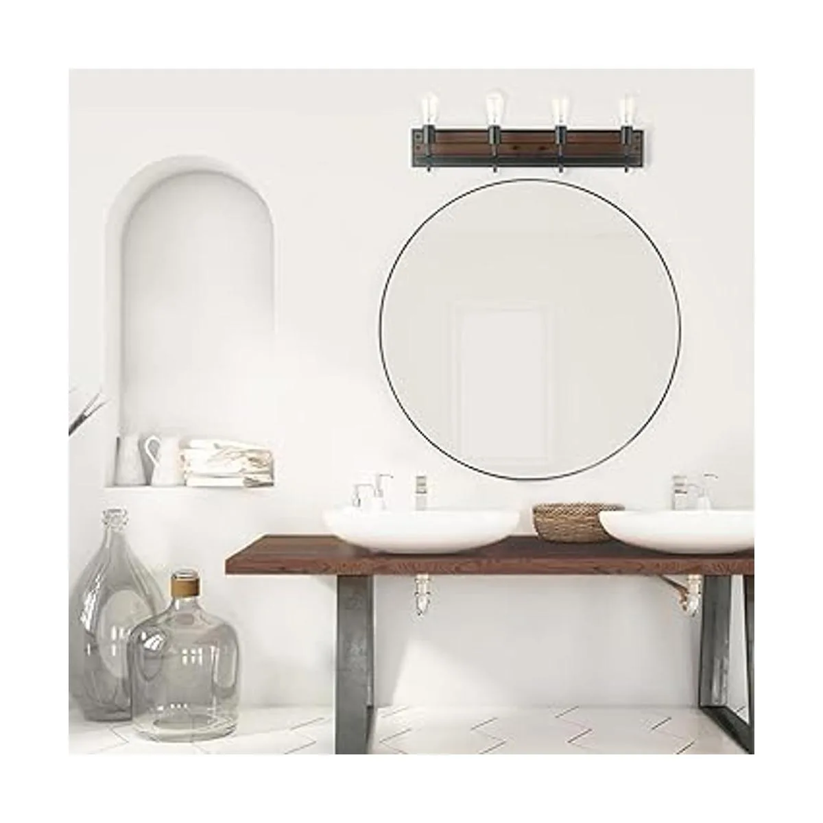 Globe Electric 52058 Lámpara de tocador de 4 luces, acabado de madera sintética, detalles negros mate, accesorio de sala de belleza, luces de baño sobre espejo, enchufe base E26, iluminación de maquillaje, luces de pared para sala de estar