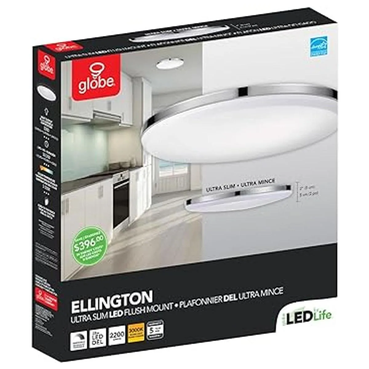LED integrado: LED integrado de 28 W, 2200 lúmenes, 3000 Kelvin, blanco cálido, 80 CRI, 50.000 horas de vida útil