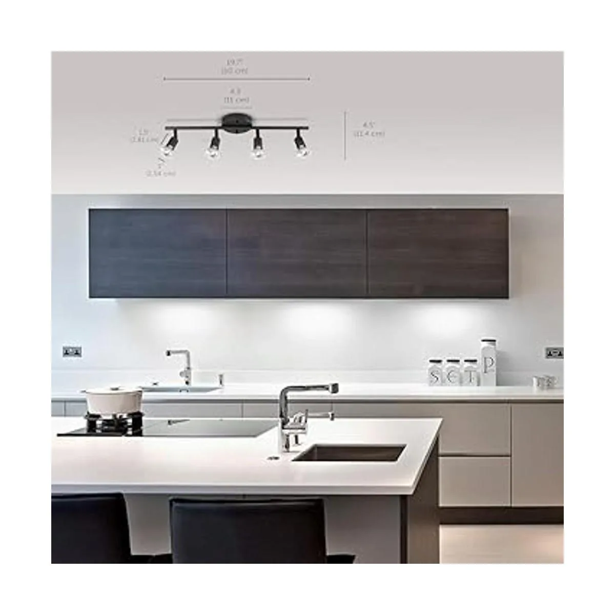 Cabezales de pista giratorios/colocación versátil: cuatro cabezales de pista giratorios independientes dirigen y enfocan la luz donde sea necesario y también se pueden utilizar para montar en la pared como una luz de tocador o pared