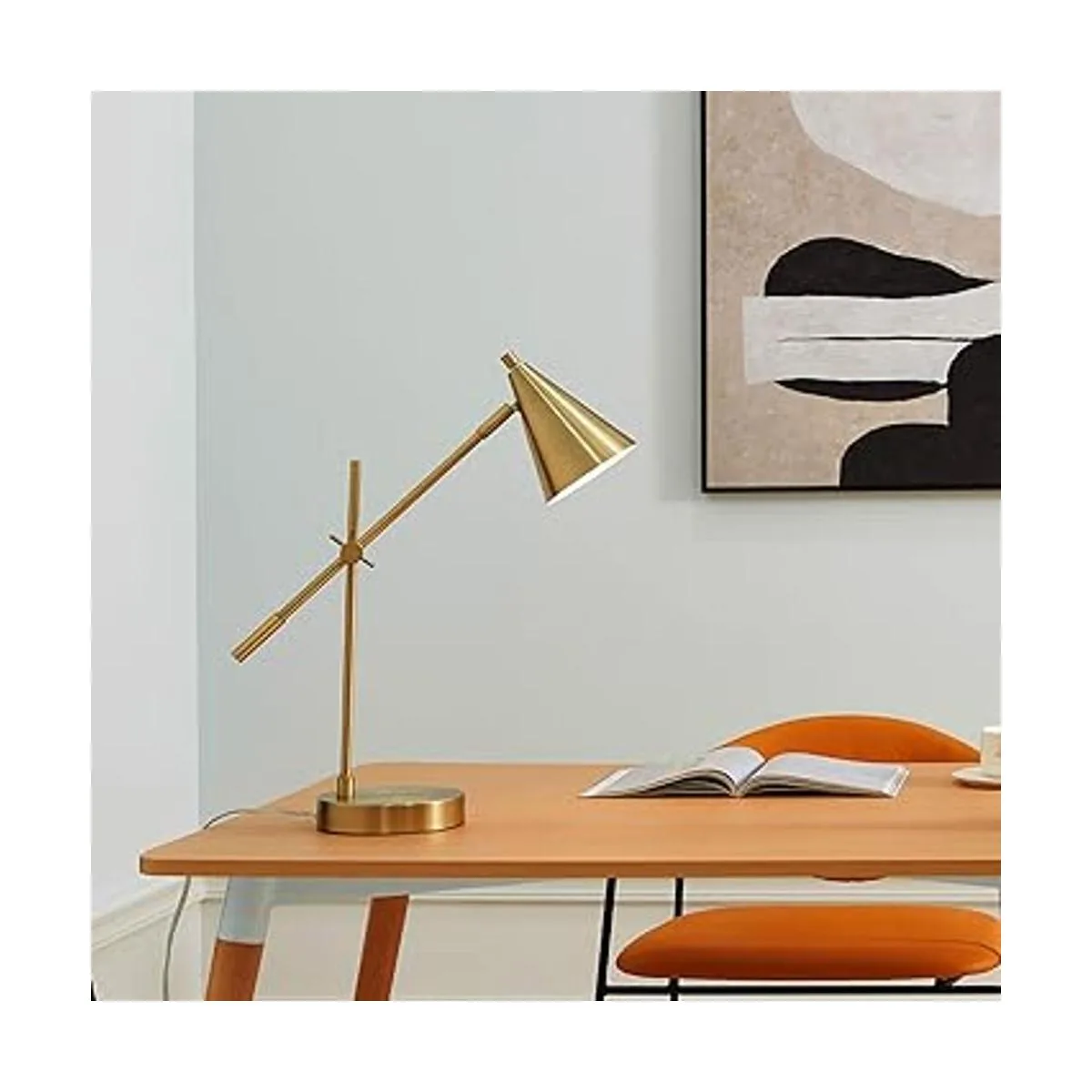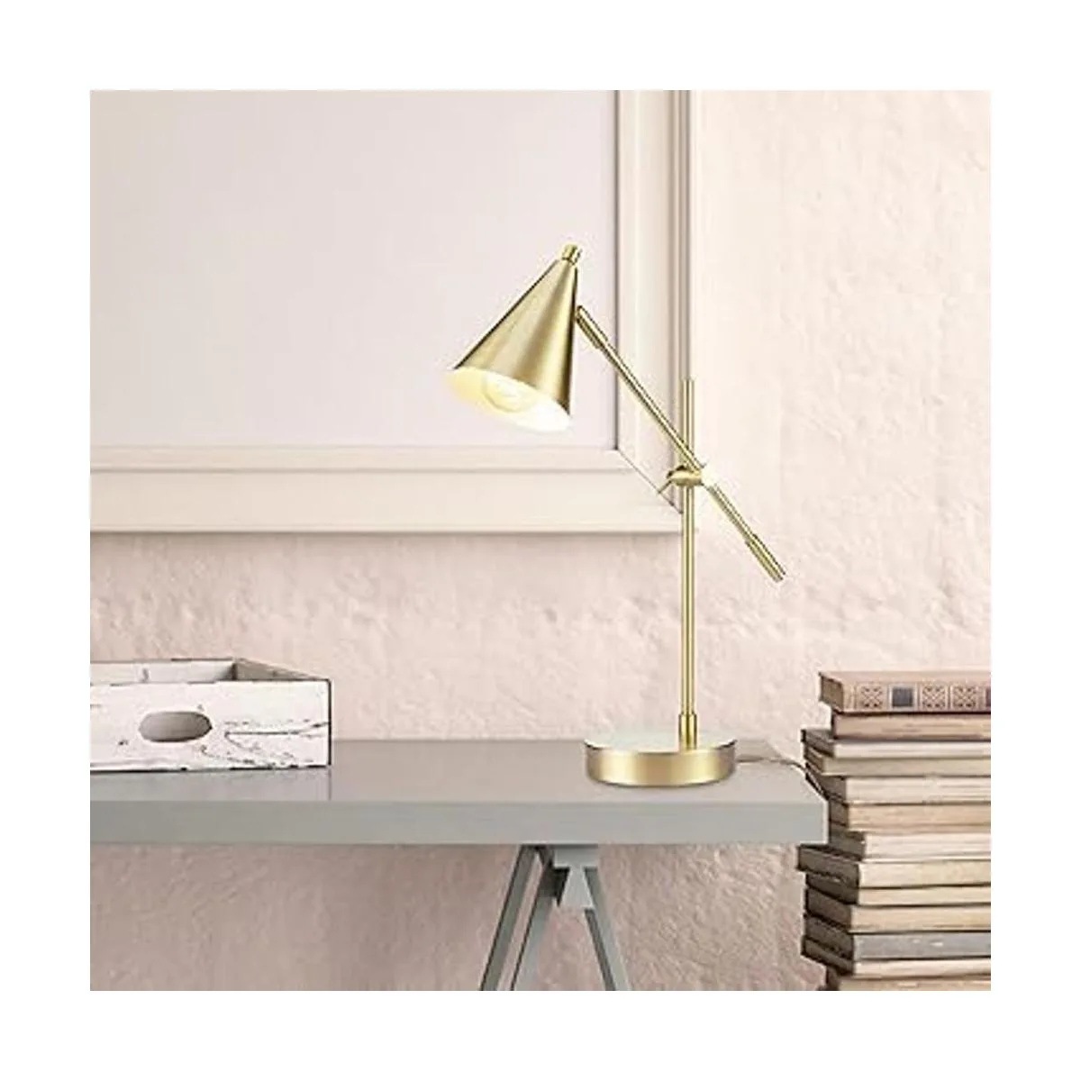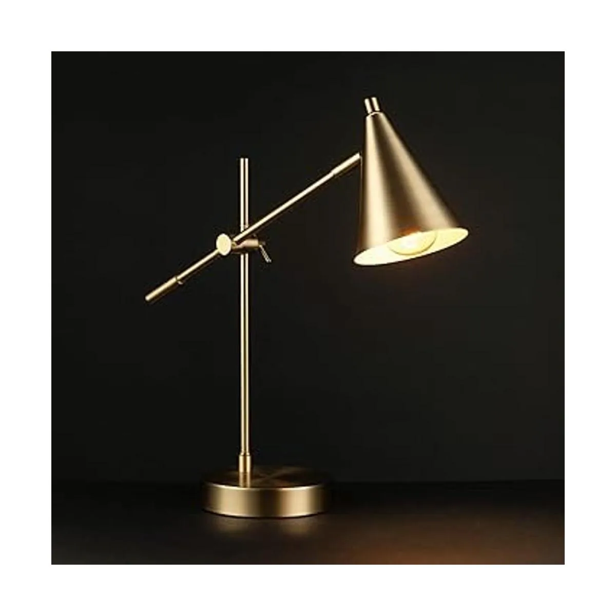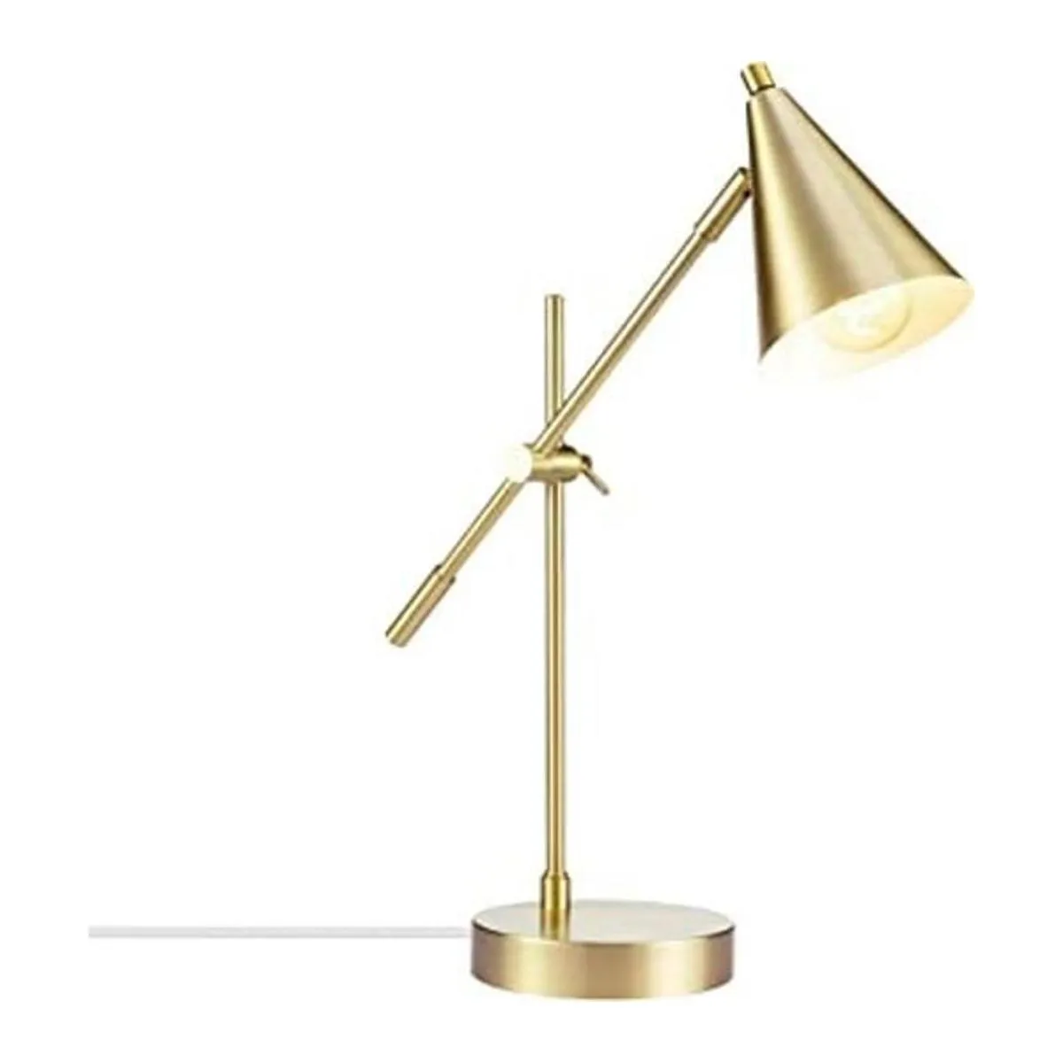Moderno mediados de siglo: con una moderna sombra de cono y un elegante acabado de latón mate, la lámpara de escritorio Tacoma es una pieza escultural de alta funcionalidad que ofrece una luz de tarea en un paquete limpio y ordenado