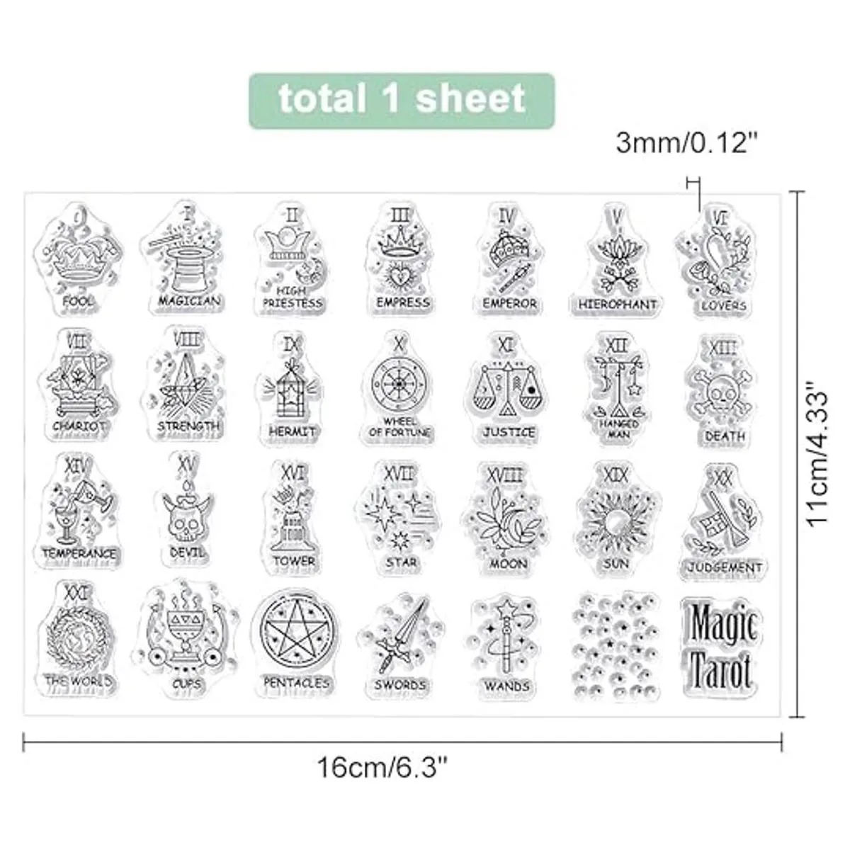 GLOBLELAND Sello de silicona transparente con patrón de tarot místico, sello mágico de silicona transparente, sello de goma para álbumes de recortes, diario, tarjetas, 4.3 x 6.3 pulgadas