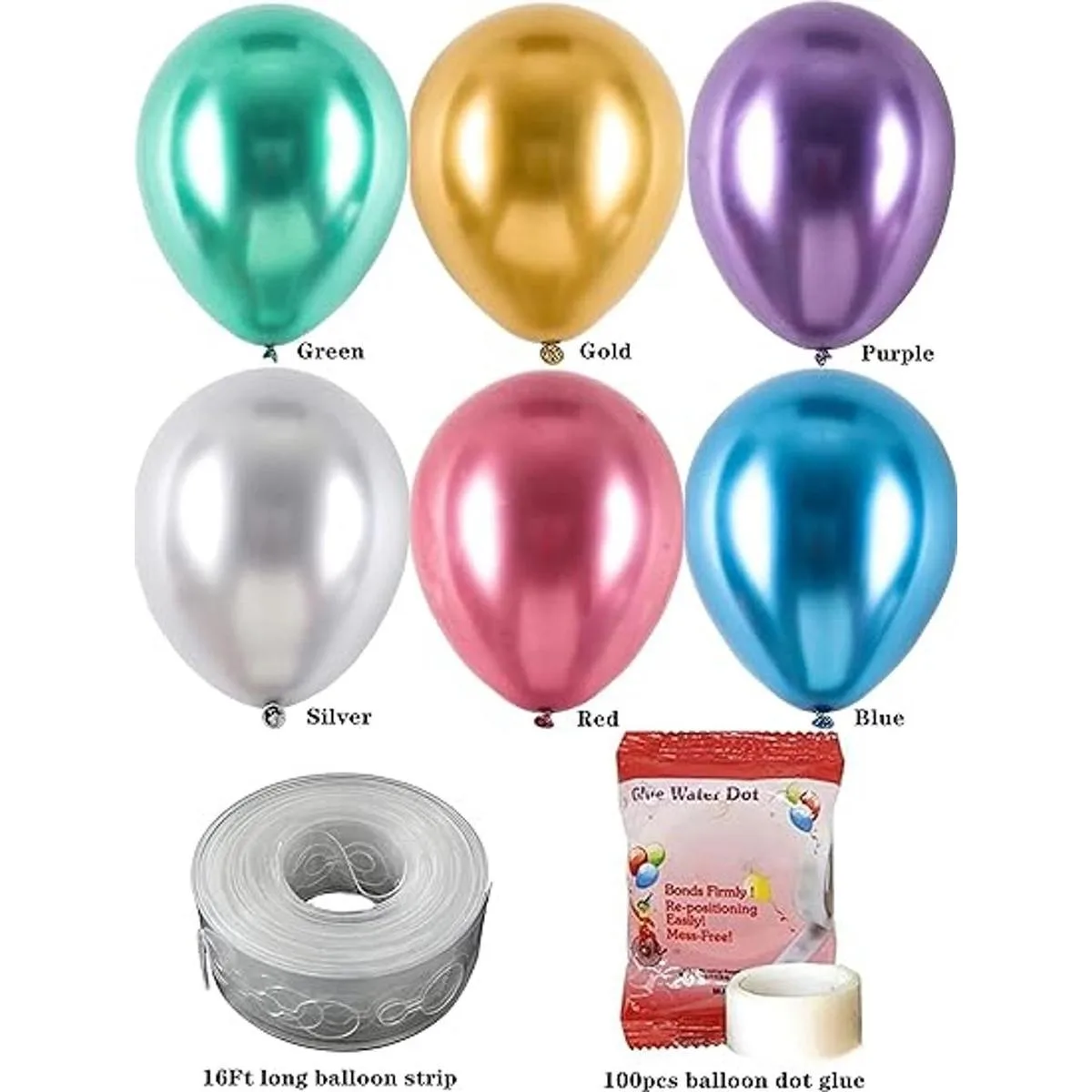 Paquete y tamaño: cada paquete contiene 100 globos de 6 colores oro, plata, azul, verde, rosa, morado. Cada globo mide 12 pulgadas de diámetro. Los globos grandes son uno de los favoritos de los suministros de fiesta.