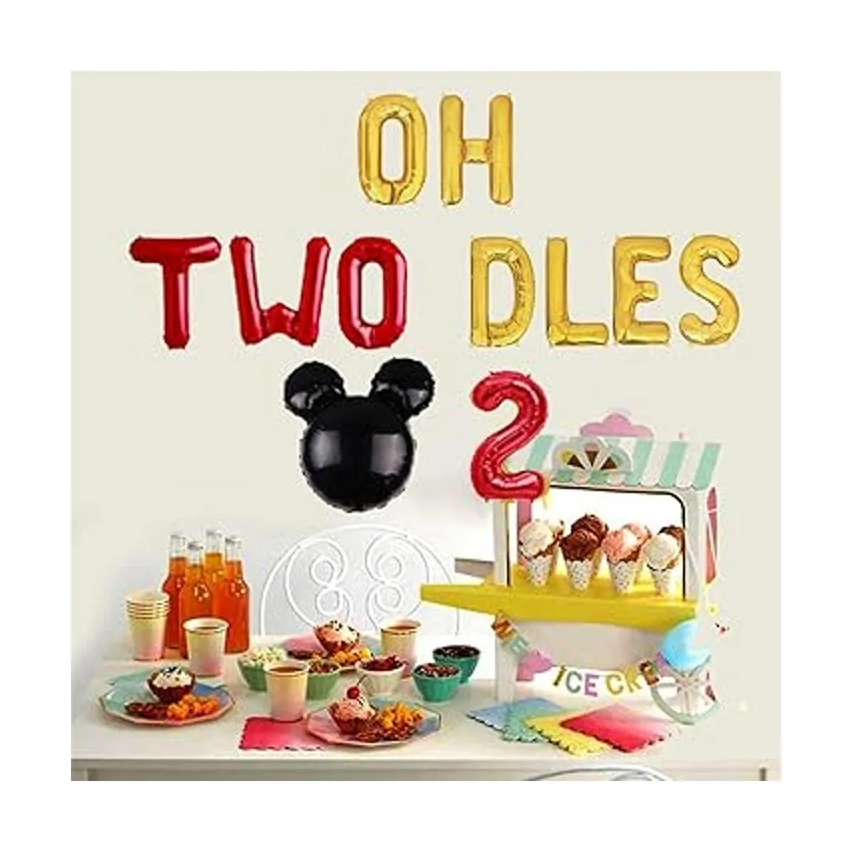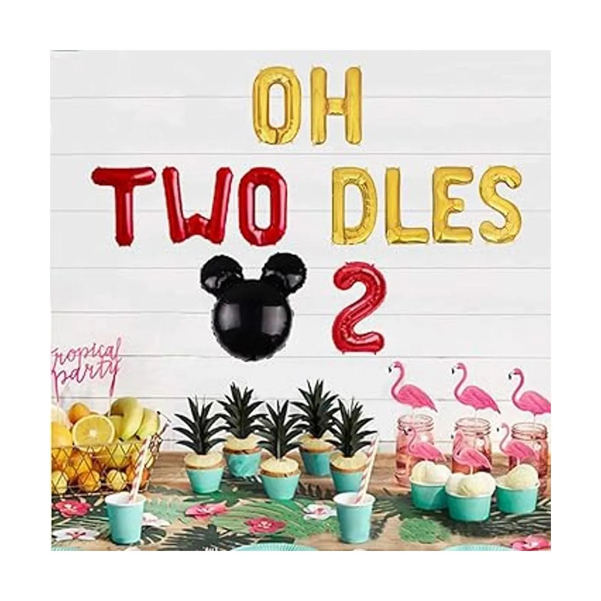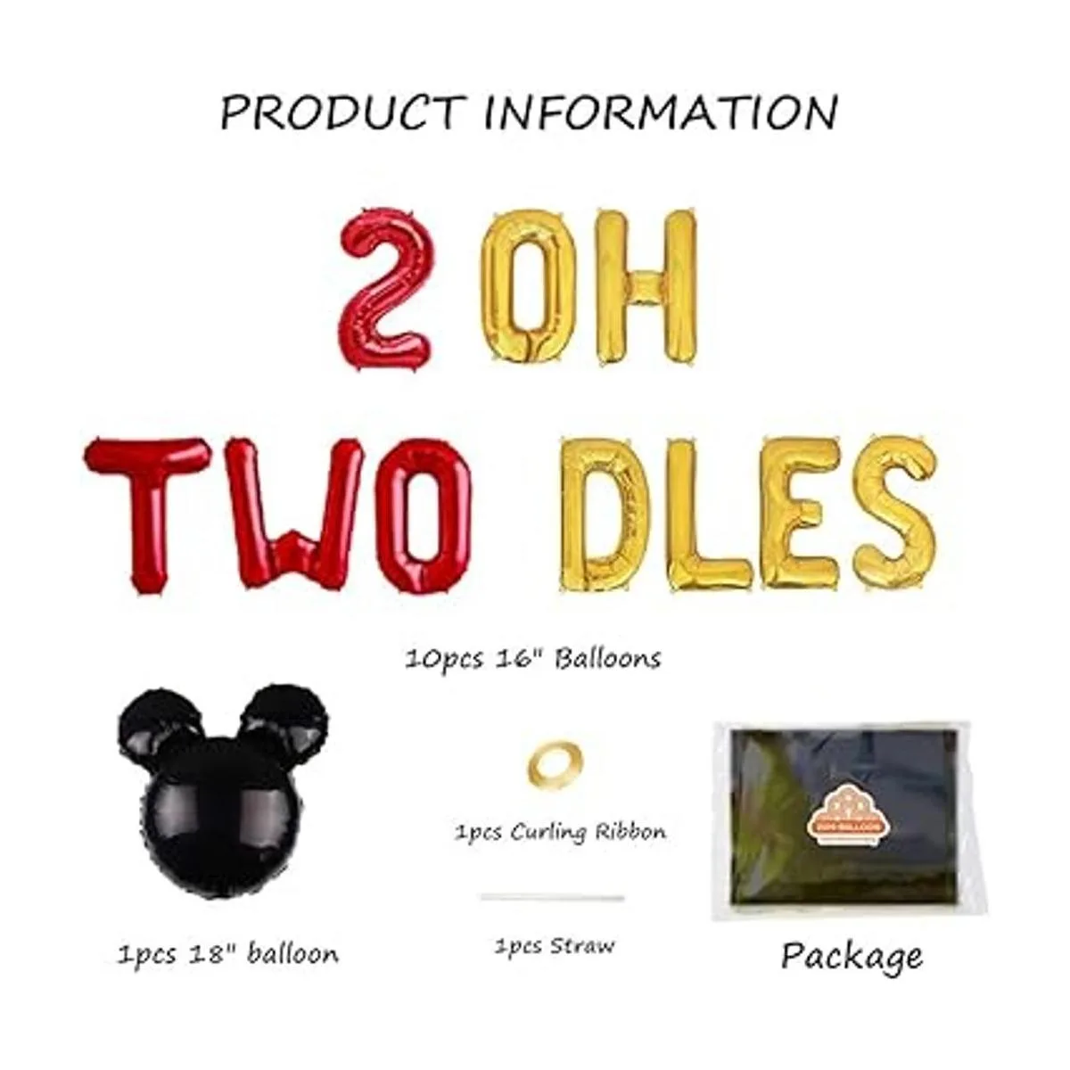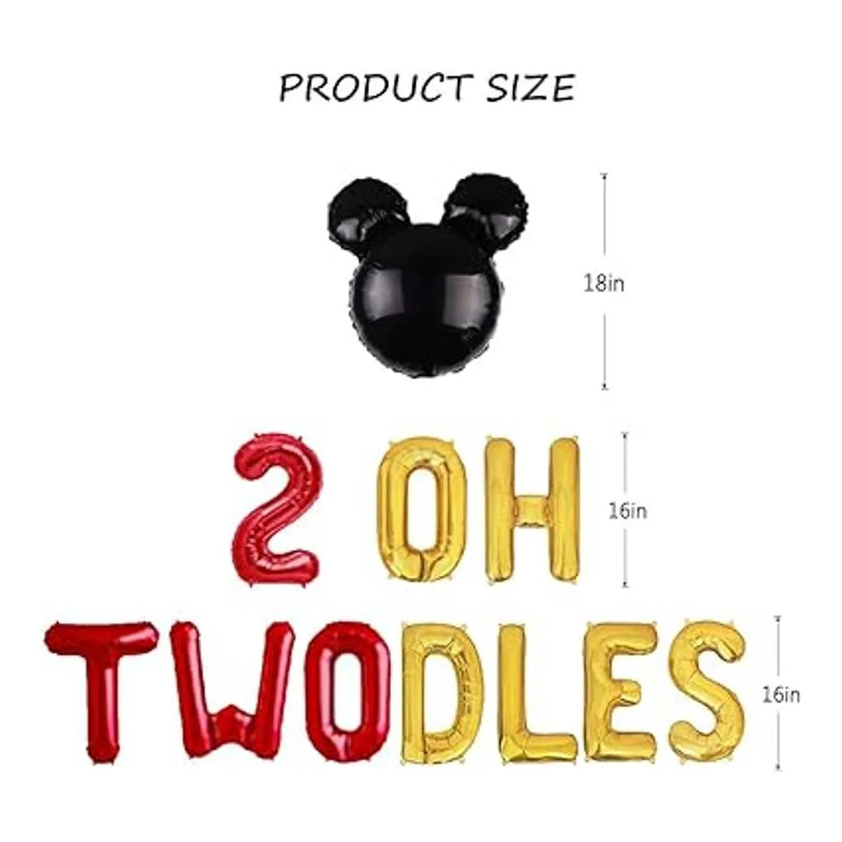 Globos de cumpleaños de Oh Twodles, globos rojos de Oh Twodles, pancarta de cumpleaños, suministros de fiesta de Mickey Mouse número 2, globos para 2 segundo niño, decoración de fiesta de cumpleaños, kit de 13 unidades de Geloar rojo
