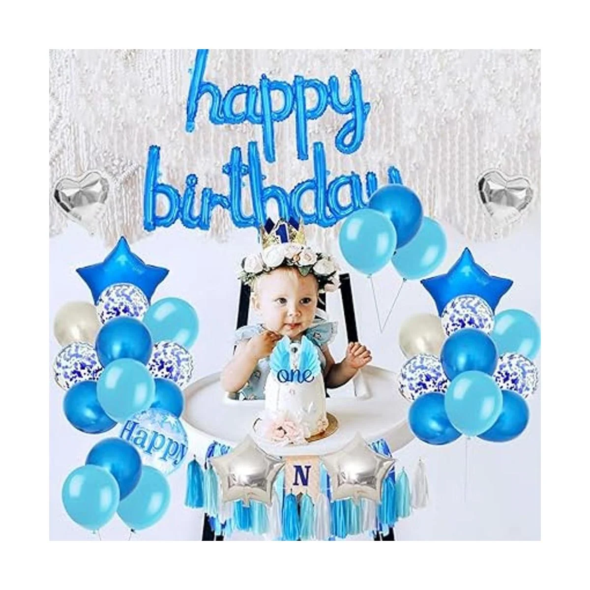 Globos de feliz cumpleaños azules de 16 pulgadas, letras de papel de aluminio de Mylar para niños y adultos, suministros de decoración de fiesta temática oceánica