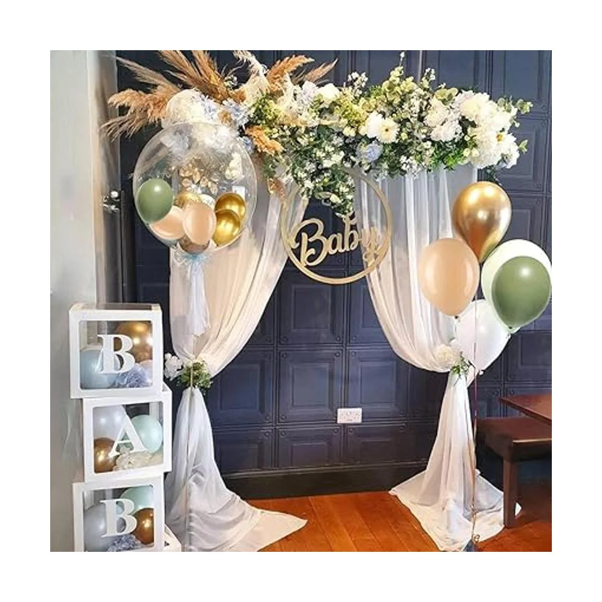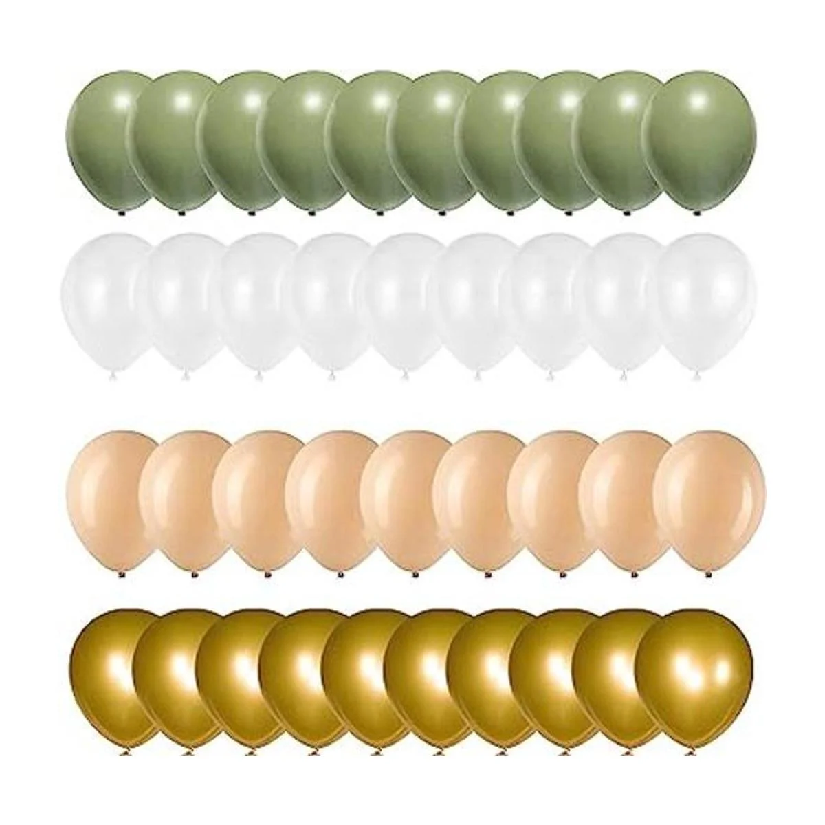 Contenido del paquete: 15 globos de color verde salvia, 15 globos de color melocotón, 10 globos dorados, 10 globos blancos y 2 cintas. Puede ganar perfectamente una fiesta de cumpleaños y seguramente capturará la atención de todos los asistentes a la fiesta.