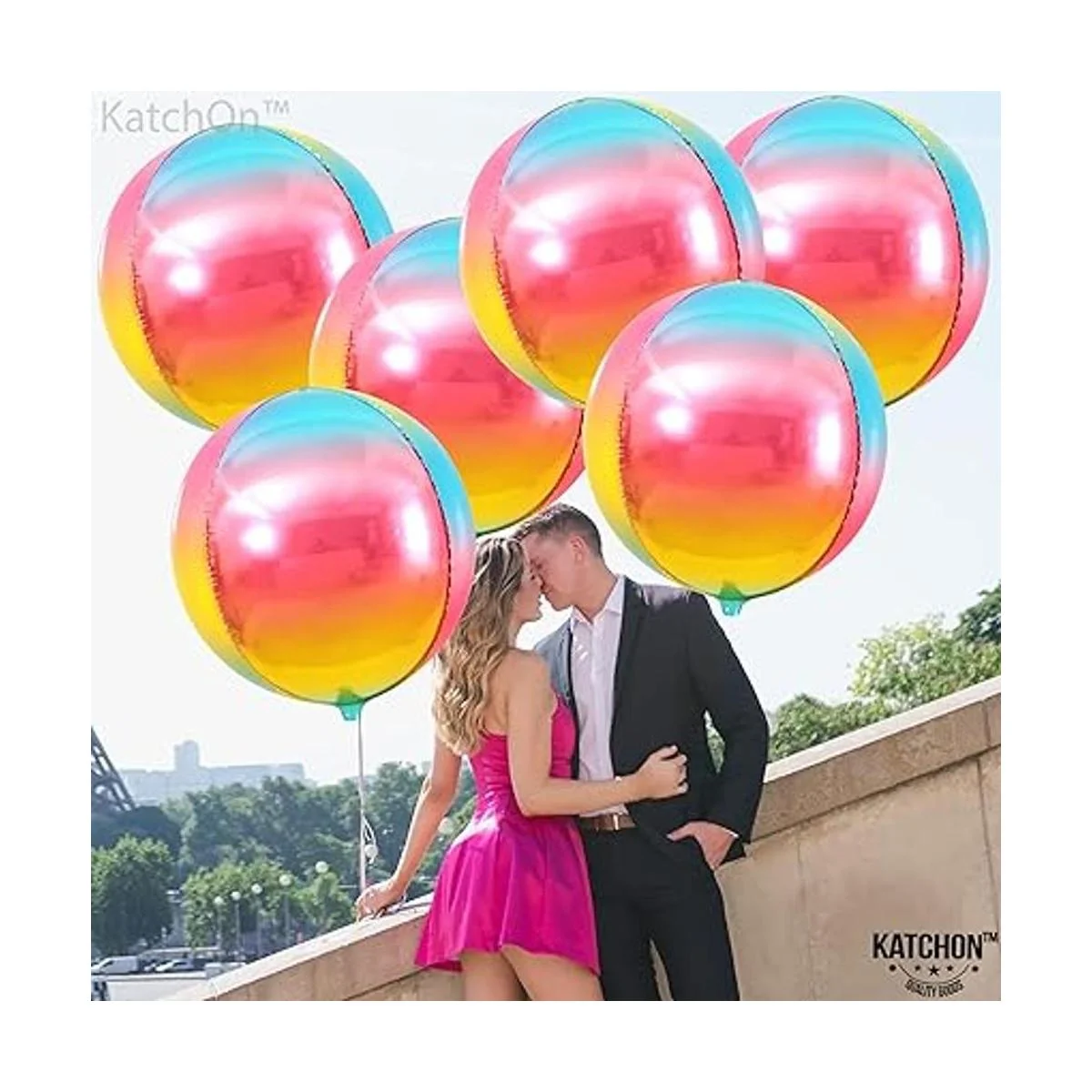 Llamativos globos 4D con diferentes temáticas decorativas. Estos globos de aluminio con diseño de arcoíris con forma de esfera 4D serán una gran decoración de arcoíris para el arco de globos. El acabado de espejo seguro se destacará y es ideal para decoración de cumpleaños con temática de arcoíris o unicornio, baby showers, graduación.