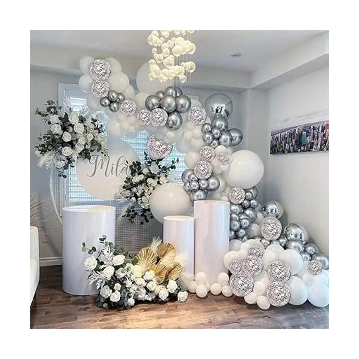 Globos plateados para fiesta, 100 globos metálicos cromados de helio de 12 pulgadas para decoración de fiesta de cumpleaños y decoración de arco, boda, cumpleaños, baby shower, fiesta de Navidad