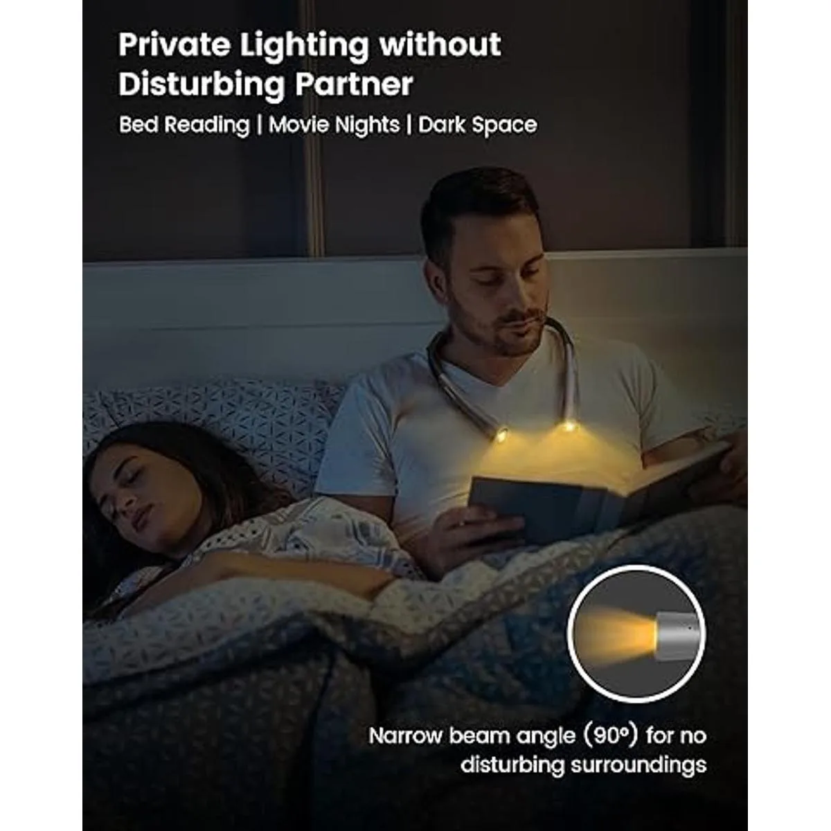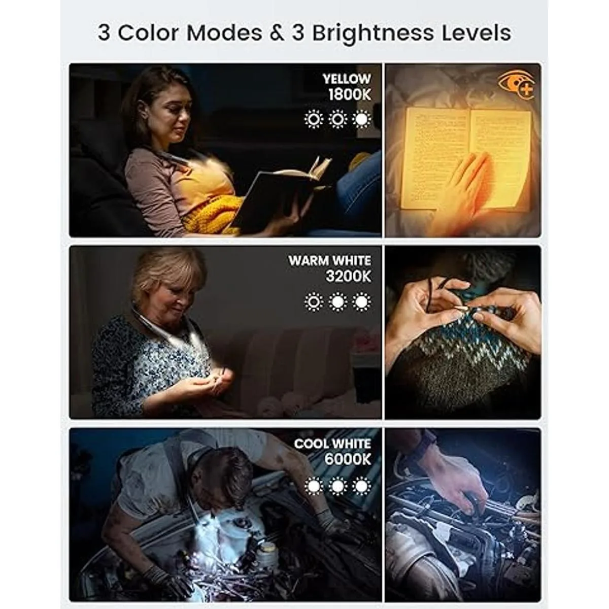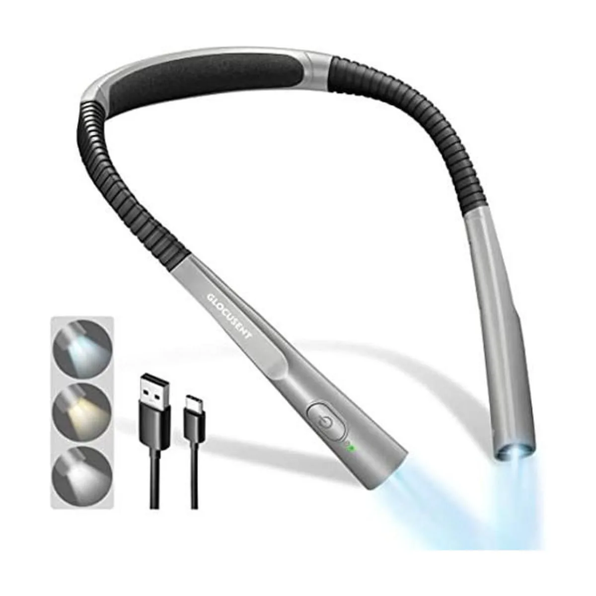 Glocusent Luz LED de lectura mejorada para el cuello, luz de libro para leer en la cama, temporizador de 30 minutos, 3 colores y 3 brillo ajustables, recargable y de larga duración, perfecta para leer, tejer y reparar