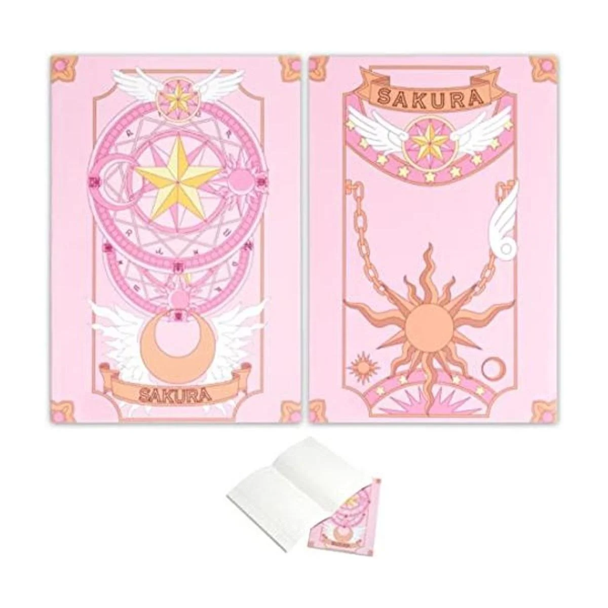 Glopastel Sakura Cuaderno de anime Manga japonesa Kawaii diseño estacionario para niñas y mujeres Cardcaptor japonés Pastel Star Moon Wings Lindo diario de viaje con rayas Paquete de 2 rosa