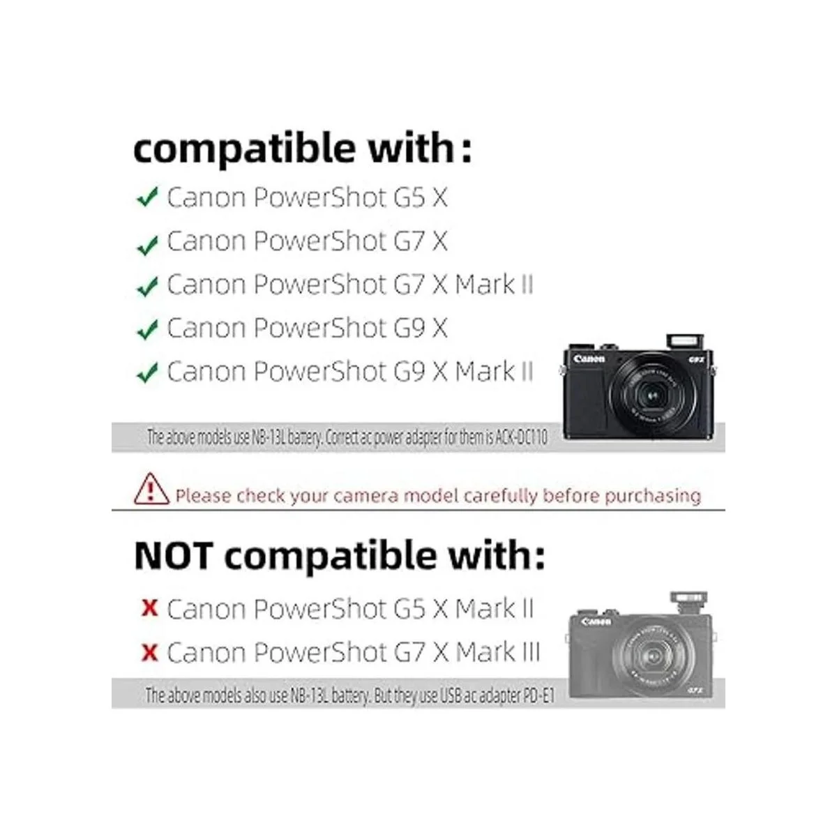 glorich ackdc110 Replacement Kit de adaptador de corriente para Canon PowerShot G5 X, G7 x, G7 x Mark II, X, G9, X Mark II