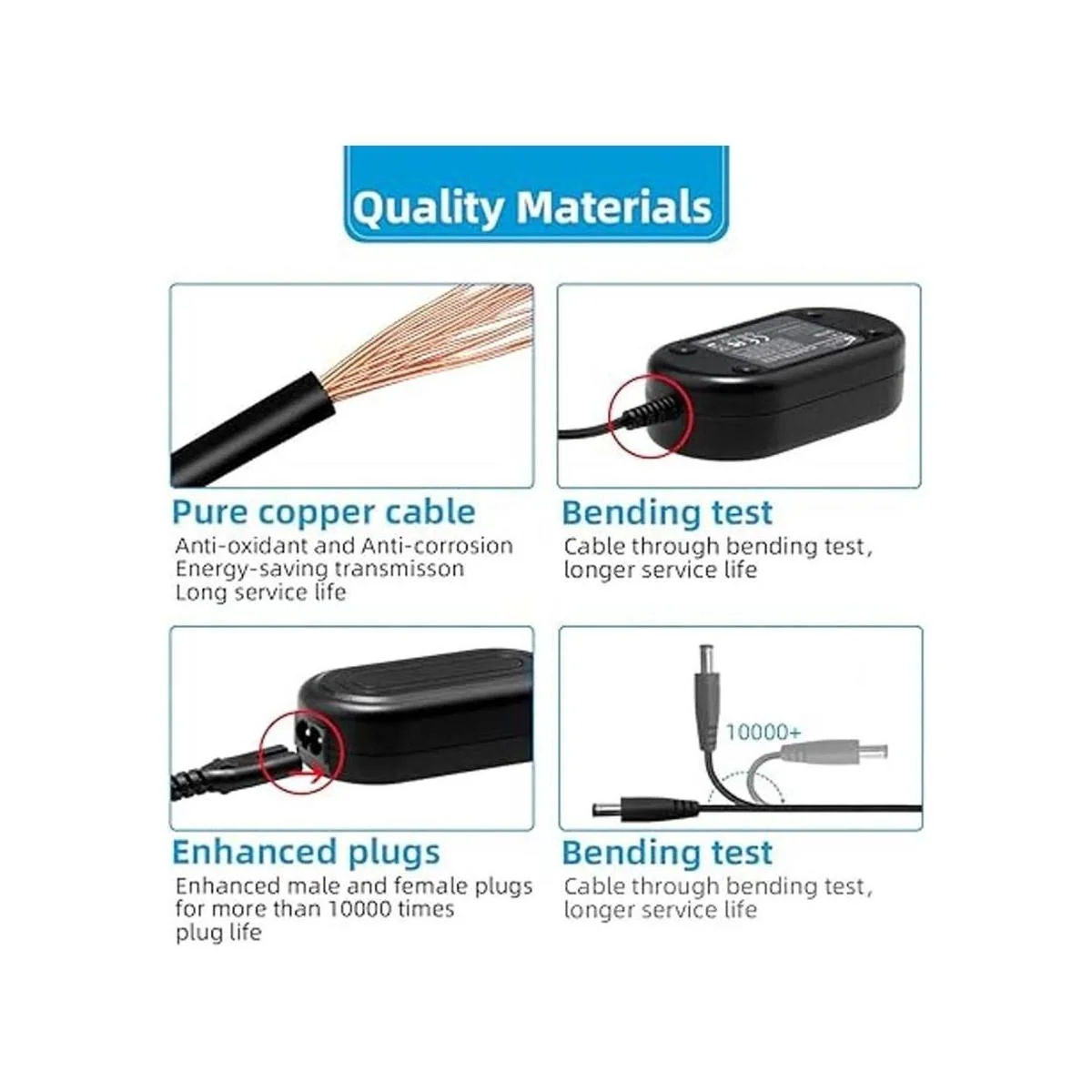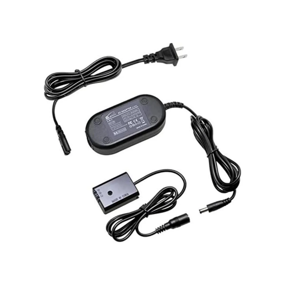 Este kit te permite alimentar tu cámara desde una toma de CA. til para largas sesiones de estudio sin necesidad de reemplazar y recargar continuamente varias baterías