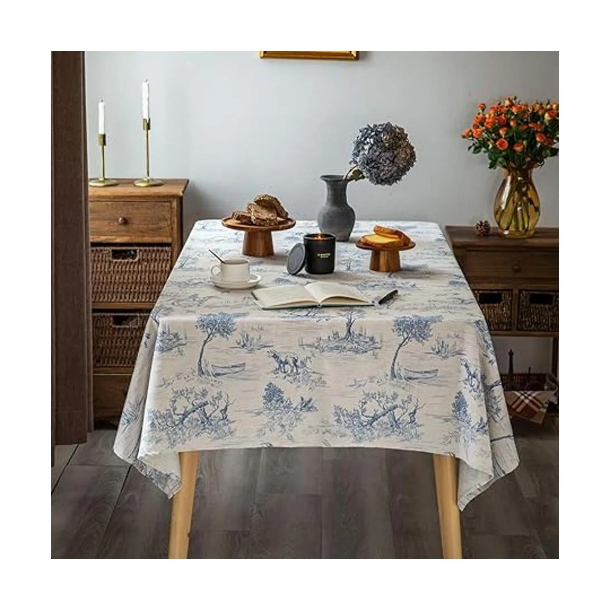 Diseño único: mantel clásico azul francés, diseño exclusivo de Glory Season. El material de diseño proviene del paisaje de caza rural francés del siglo XVII, combina con la decoración de tu granja. Estilo refrescante perfecto para fiestas de verano o picnics al aire libre.