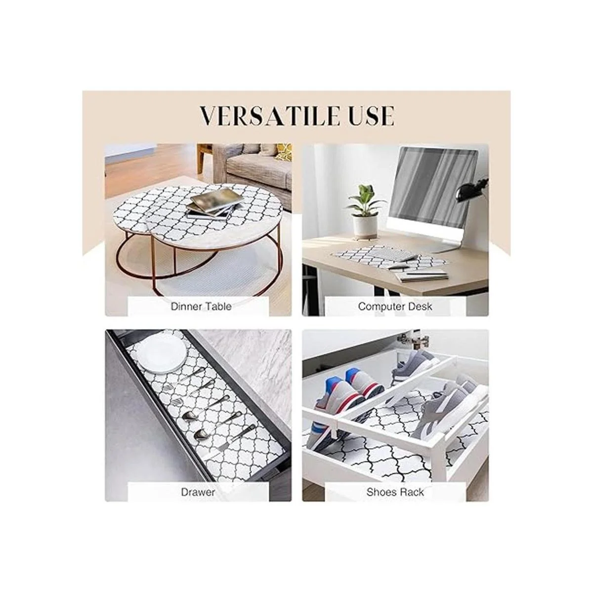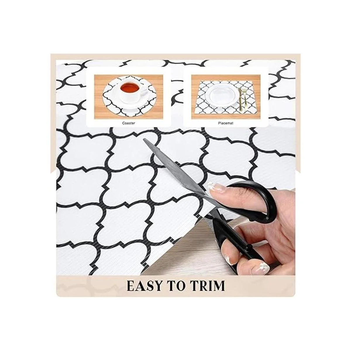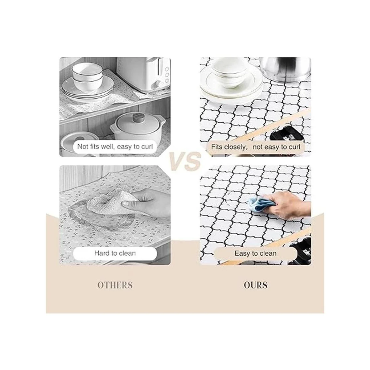 Glotoch Forro de estante para gabinetes de cocina, forros de cajón no adhesivos de 12 x 20 pies, forros de refrigerador impermeables y duraderos, forro de gabinete de cocina para estantes, refrigerador, blanco y negro