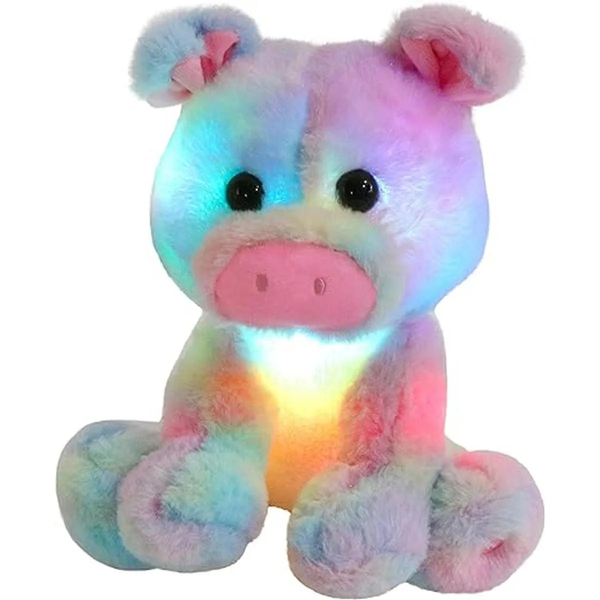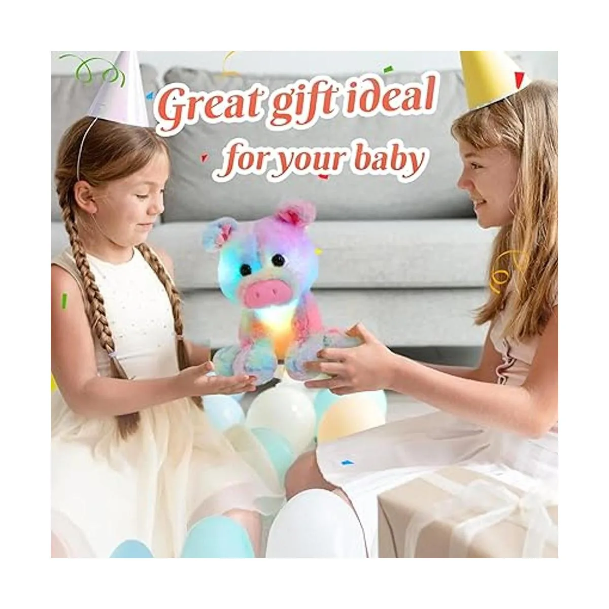Glow Guards Peluche de cerdo arcoíris iluminado de 12 pulgadas con luces nocturnas, ideal para el día del niño y cumpleaños para niños pequeños