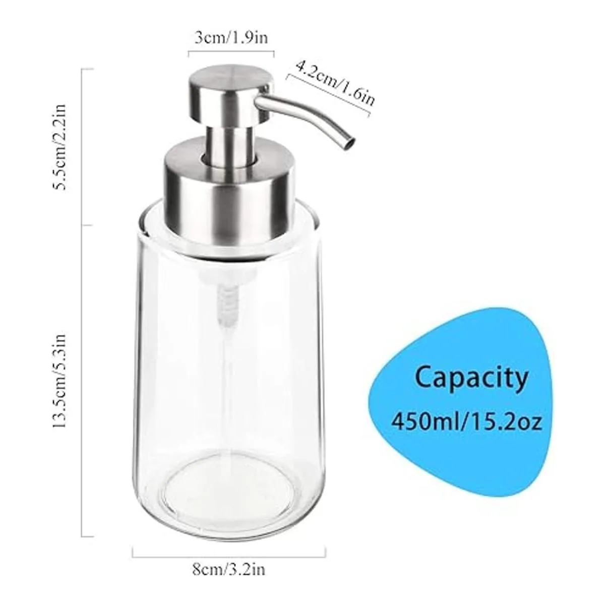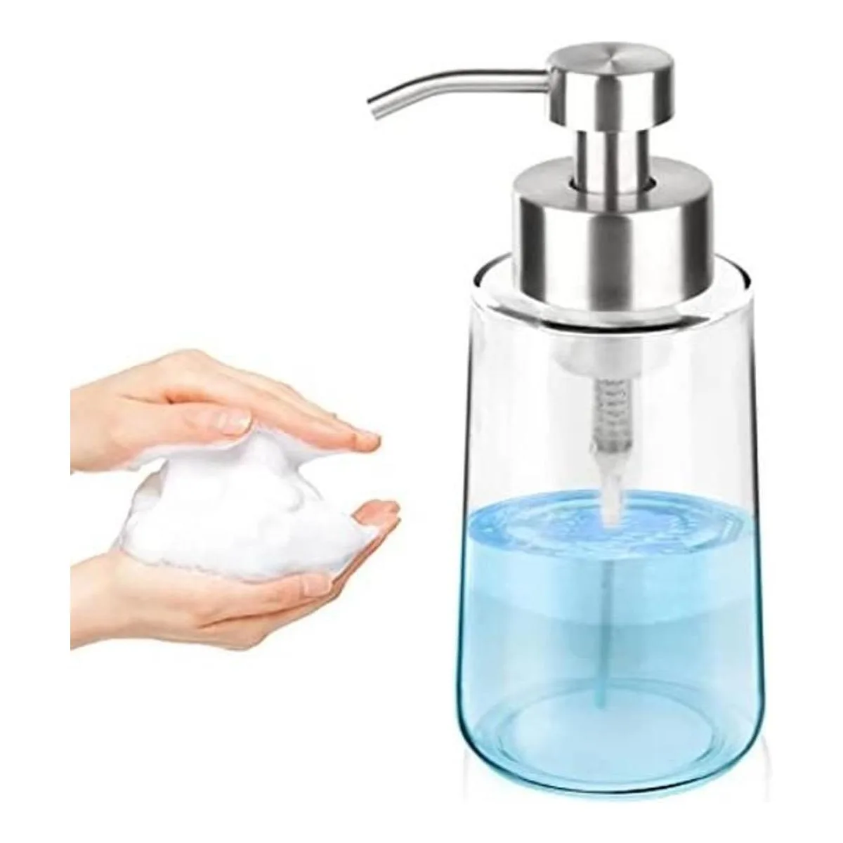 GLUBEE Dispensador de jabón espumoso de vidrio, dispensador de jabón de vidrio grueso con bomba de acero inoxidable a prueba de óxido, dispensador de jabón de espuma transparente con amplia apertura para cocina y baño 15 onzas