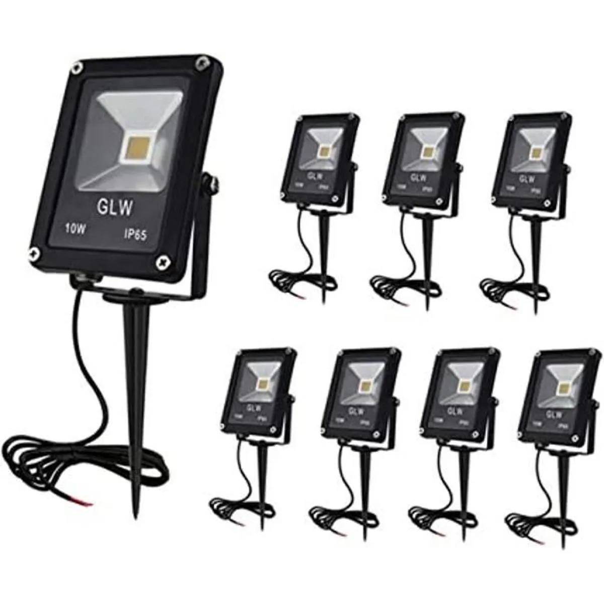 GLW Luces de paisaje de bajo voltaje de 10 W 12 V para exteriores IP65, luces de jardín impermeables, 3000 K, iluminación de paisaje blanco cálido para patio, árbol, paquete de 8