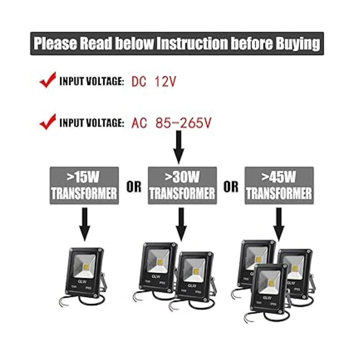 10 W cómodo y brillante: la luz blanca cálida de 3000 K puede mostrarte un ambiente acogedor. El voltaje de entrada es de 12 V CA o CC, muy seguro de instalar y usar. Si se utiliza a voltaje de 110 V CA, se necesita un transformador de 12 V.