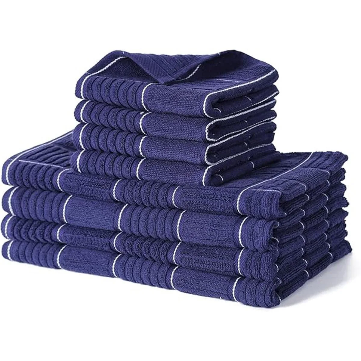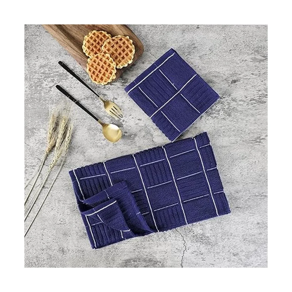 Glynniss Juego de toallas de cocina y paños de cocina, cuatro toallas de cocina de 16 x 26 pulgadas, cuatro paños absorbentes para lavar platos de 12 x 12 pulgadas, limpieza y secado para uso diario, paquete de 8 unidades azul
