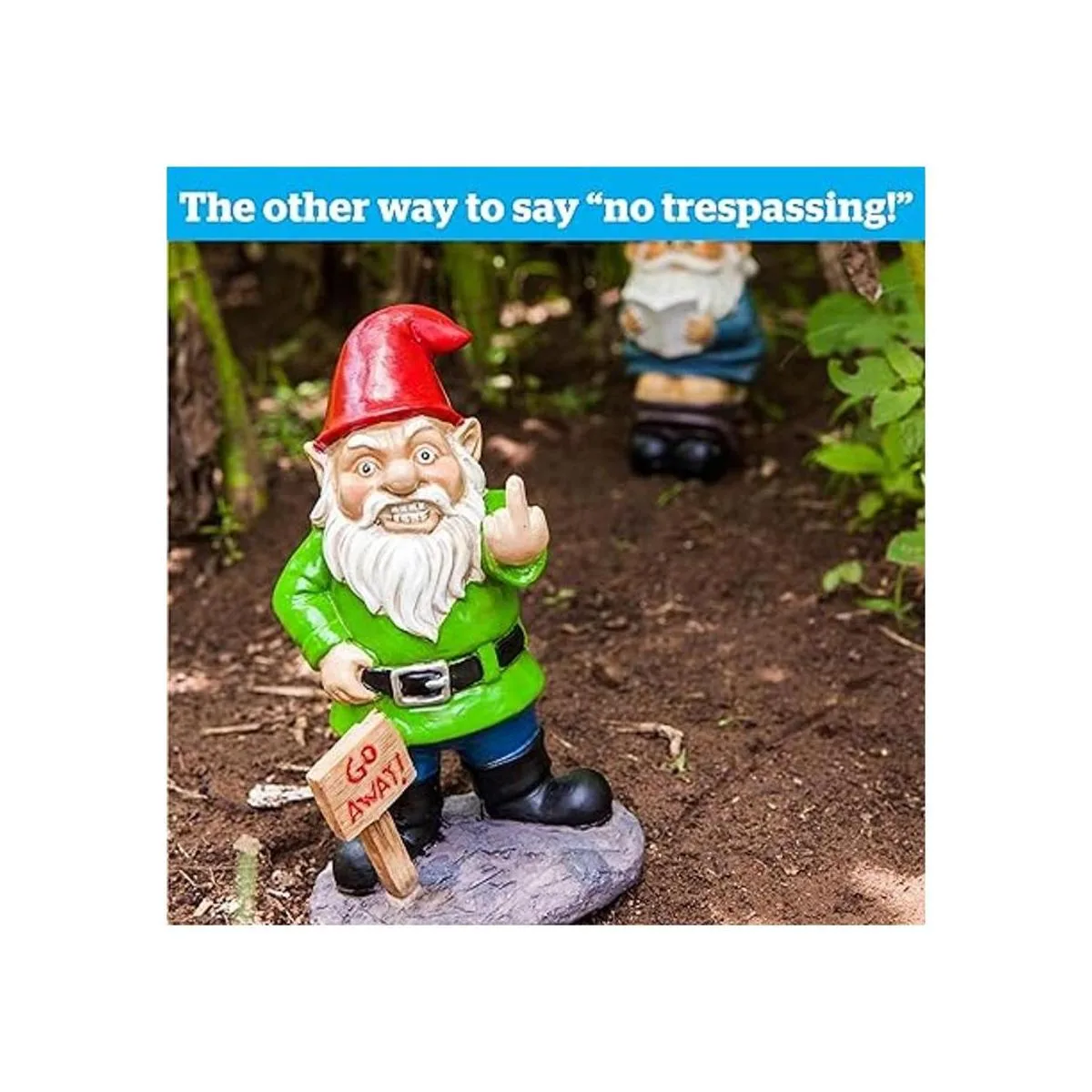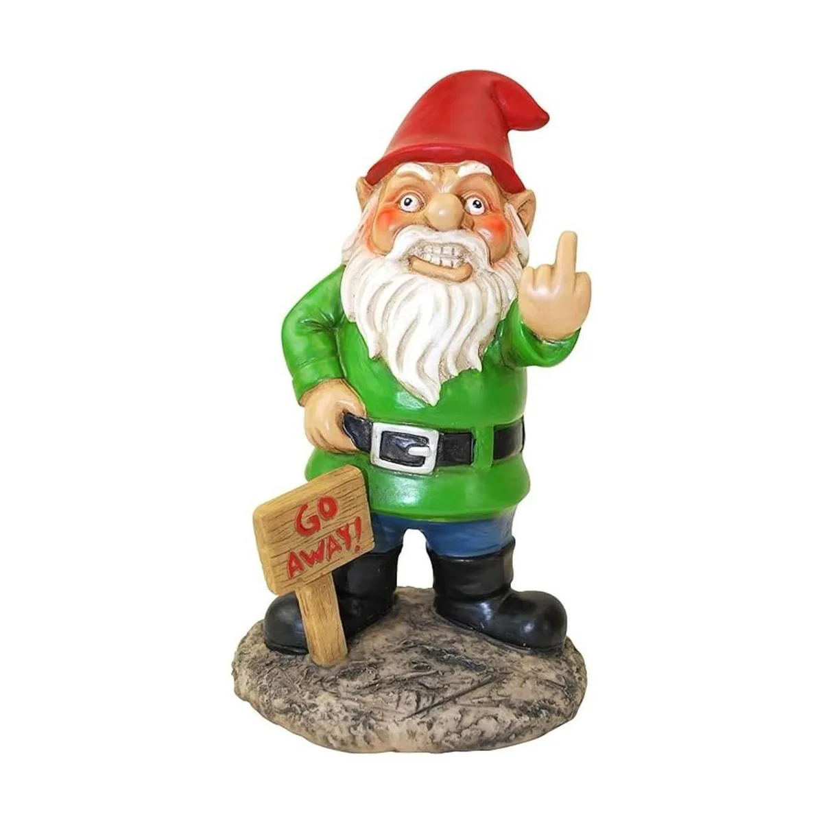 Gnomo de jardín con la leyenda Go Away, Bigmouth Inc.