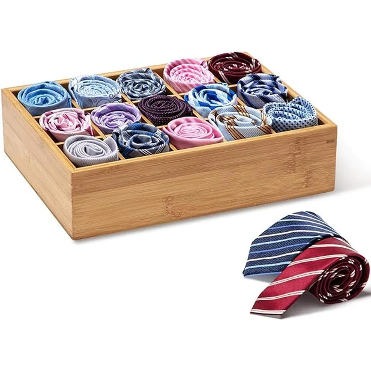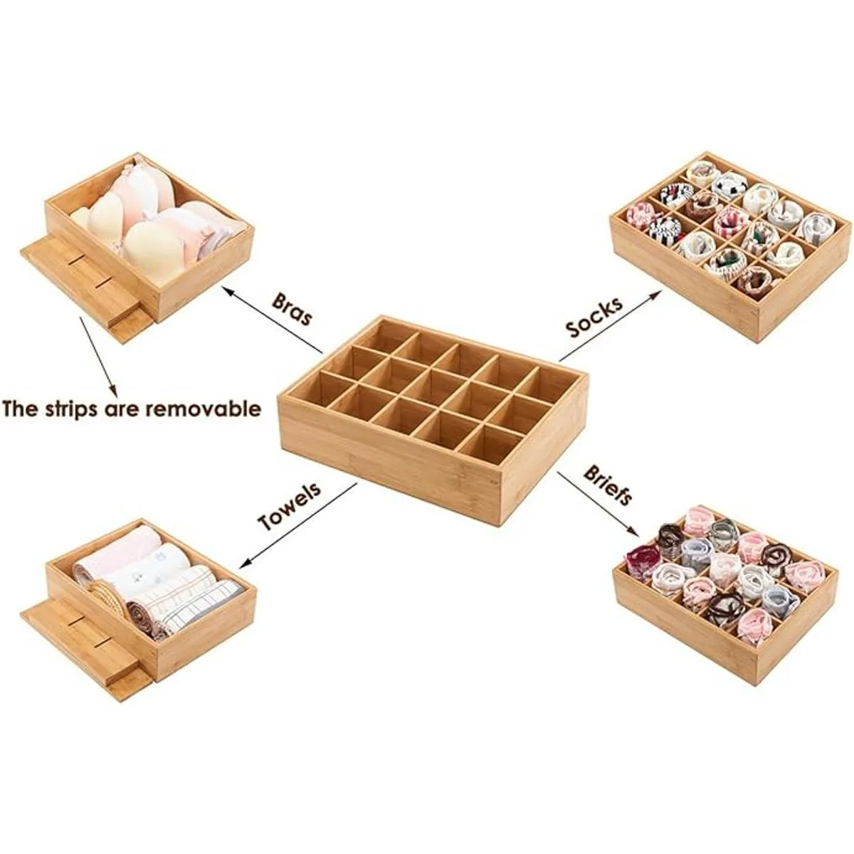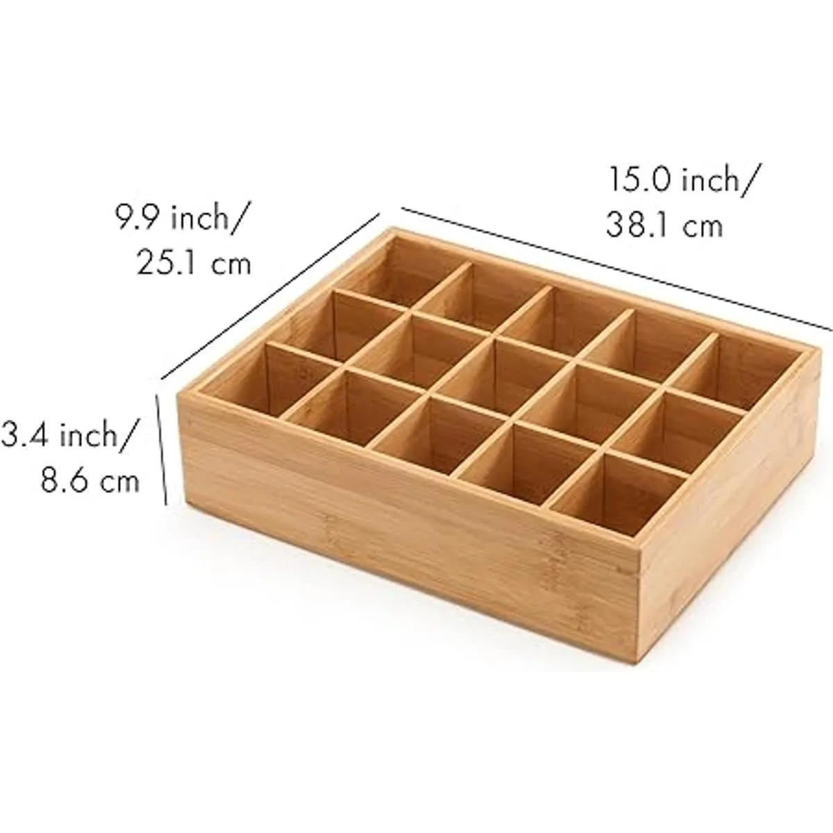 GOBAM Divisor de cajones de bambú para armario, organizador de almacenamiento con 15 compartimentos, organizador de cajones, caja de almacenamiento para cinturones, corbatas, sujetadores, calzoncillos, calcetines y joyas, natural
