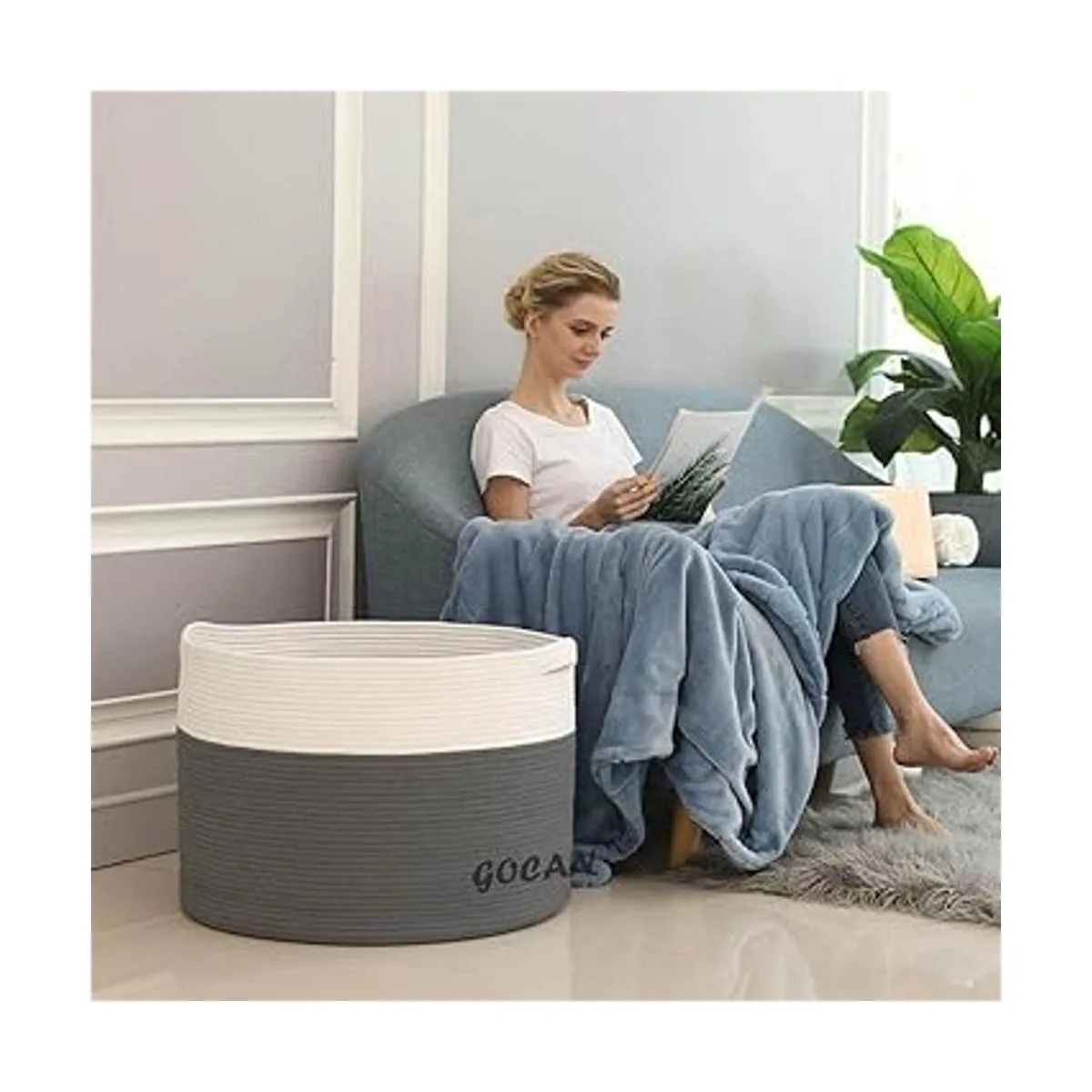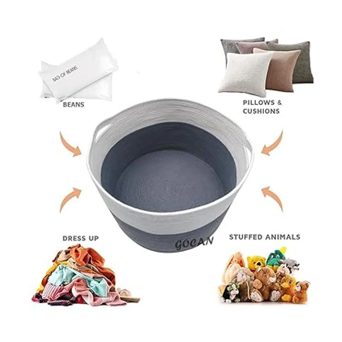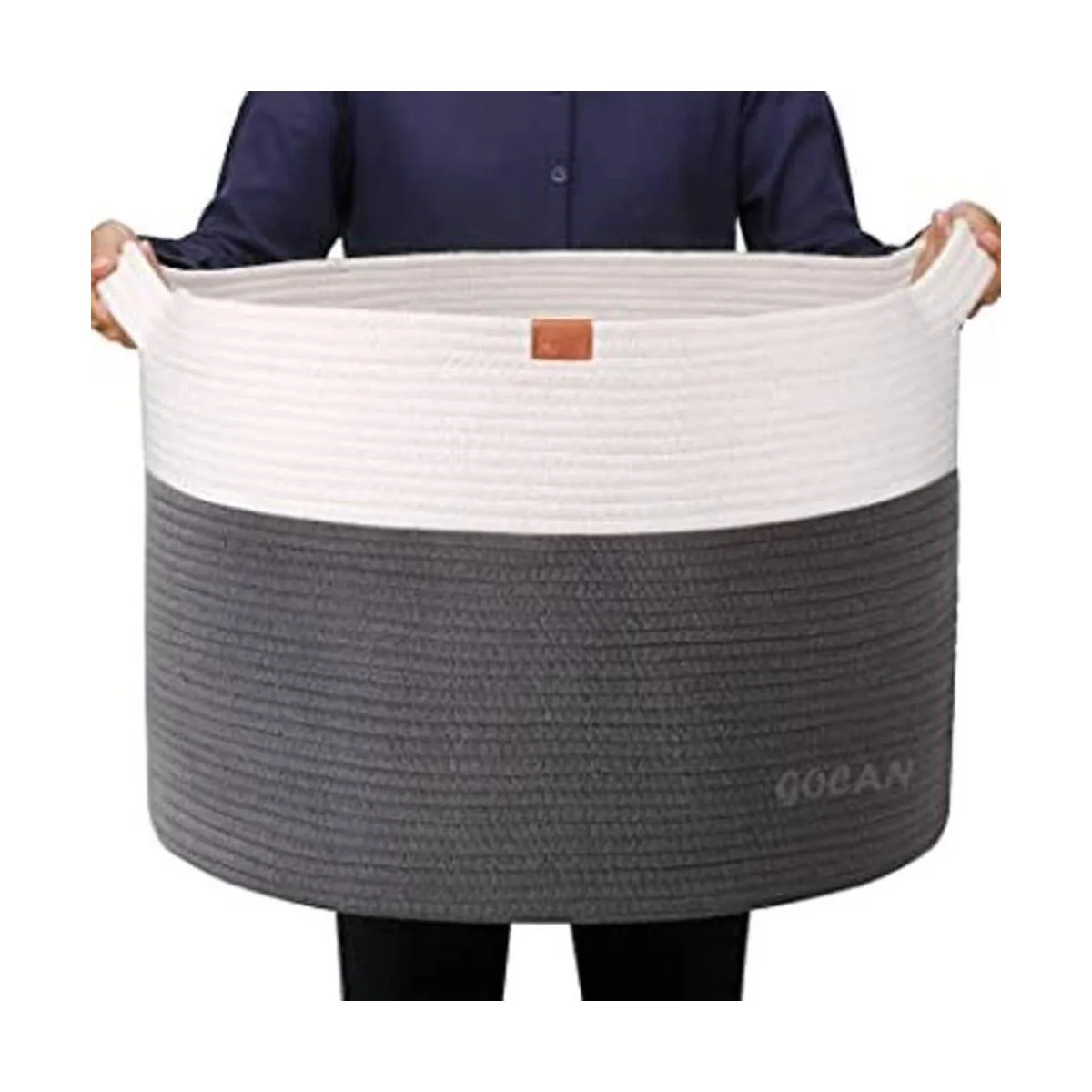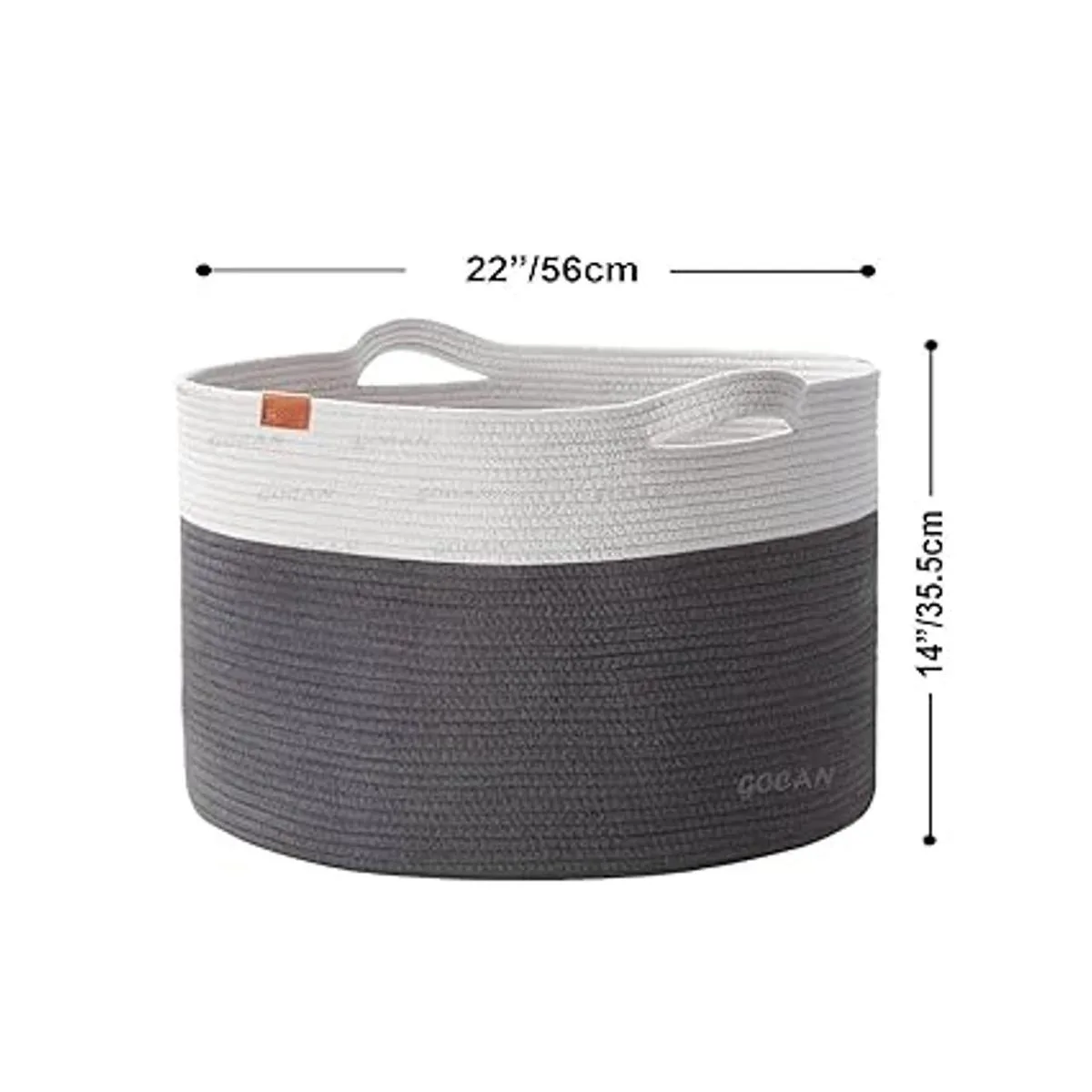 GOCAN Cesta de lavandería extra grande de almacenamiento de juguetes de 22 x 22 x 14 pulgadas, canasta tejida de cuerda de algodón con asas para sala de estar grisbeige XXXL