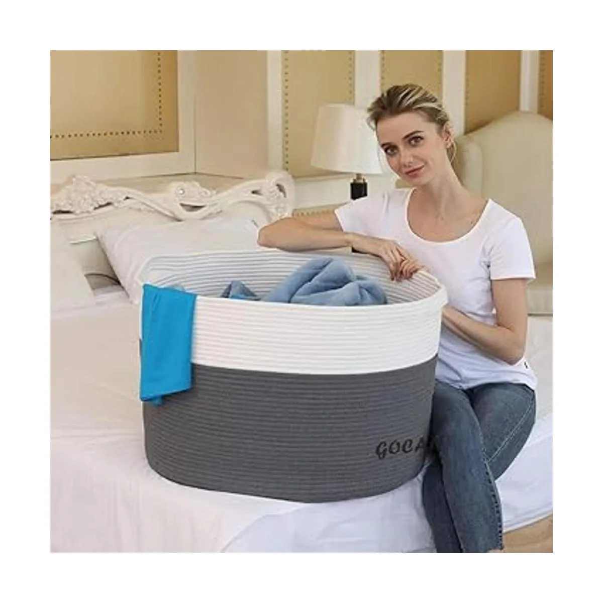 Diseño elegante y de color neutro: con este estilo de moda y color neutro, esta cesta de almacenamiento de algodón hecha a mano puede combinar con cualquier color y diseño de tu esquema de hogar.