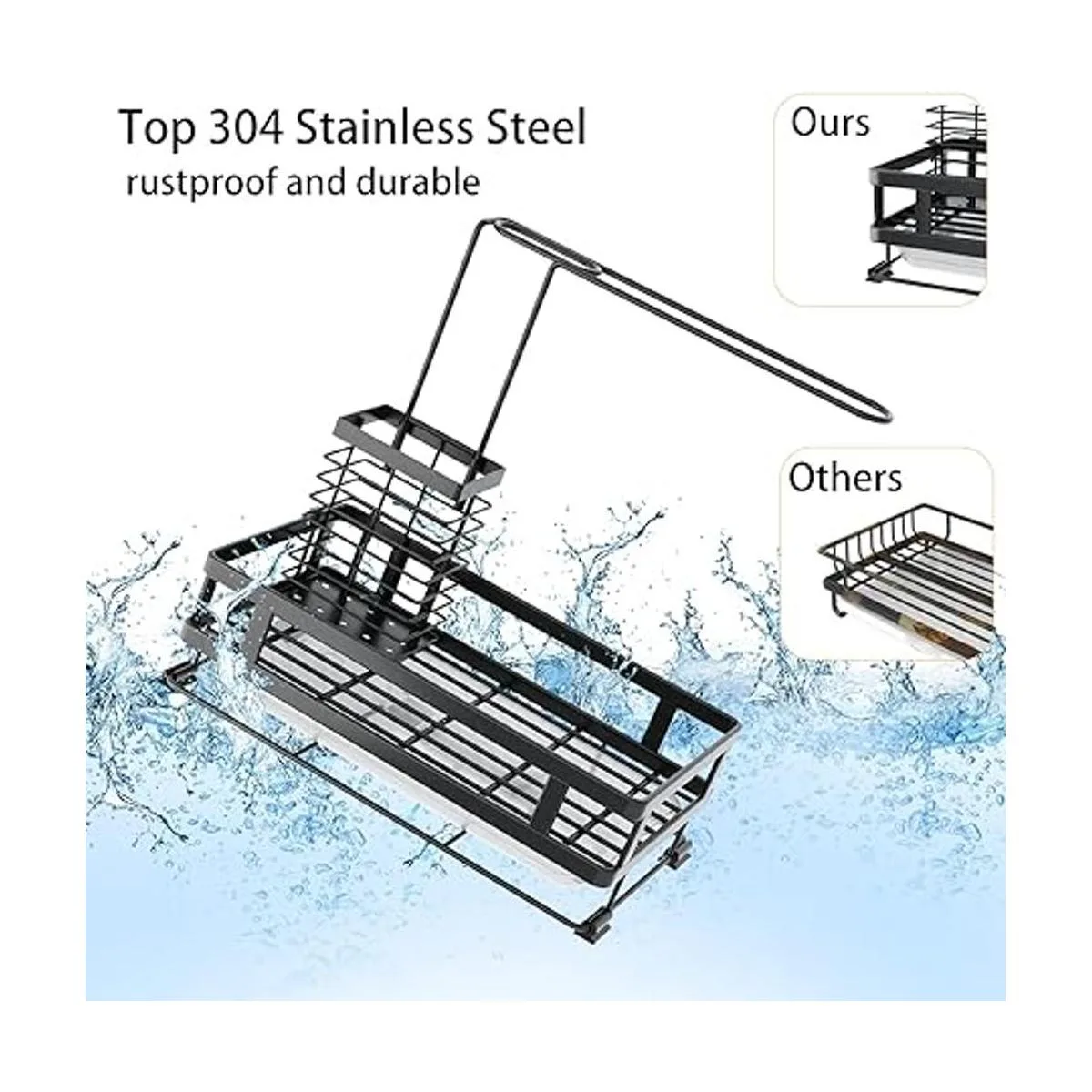 High Quality Stainless Steel This Kitchen Sponge Holder is Made of 304 Stainless Steel with Black Powder Coating, Which is Durable, Fingerprint Proof and Rust Proof, and Helps to Keep Clean and Beautiful. Antislip Rubber on the Bottom to Avoid Sliding While Protecting the Desktop from Scratches.