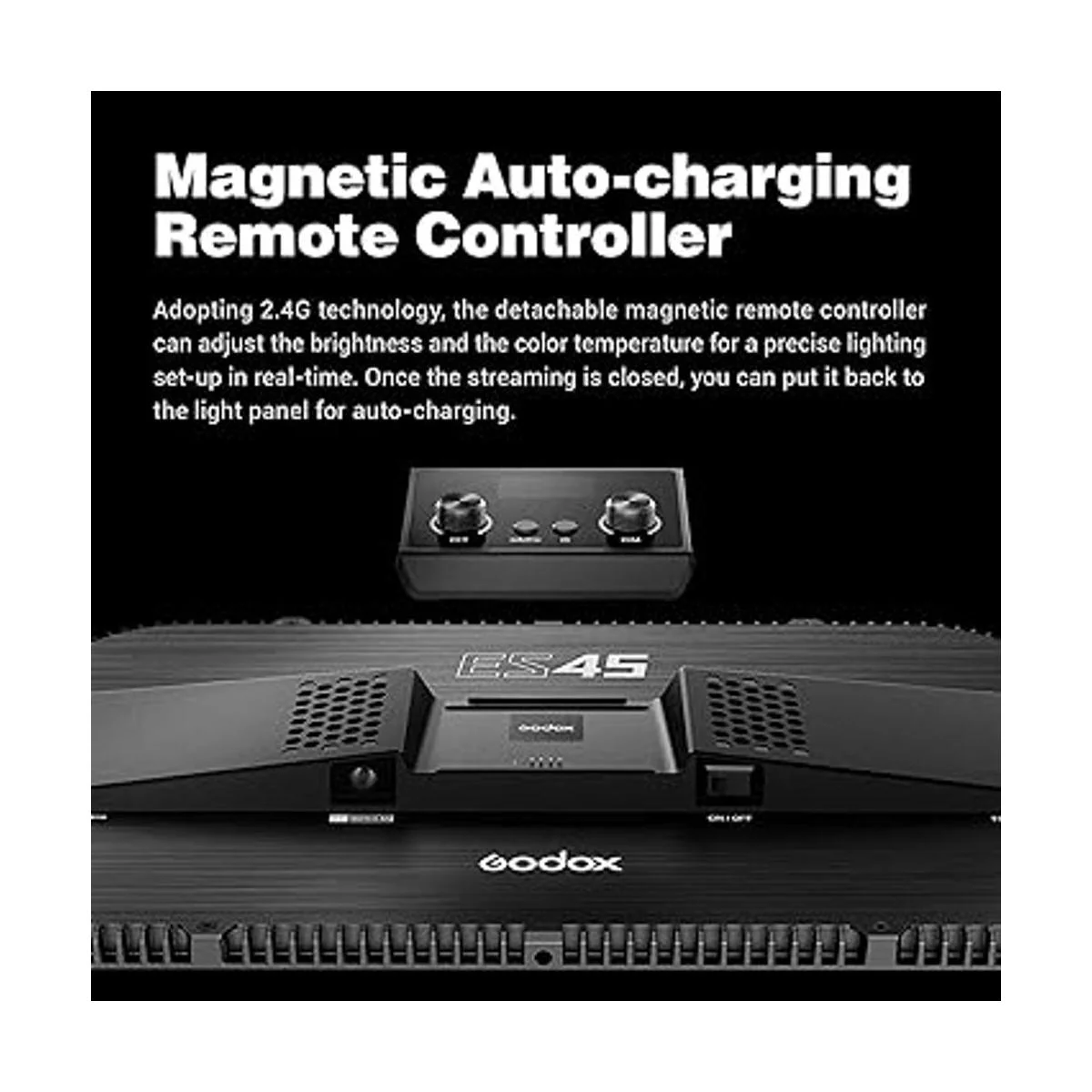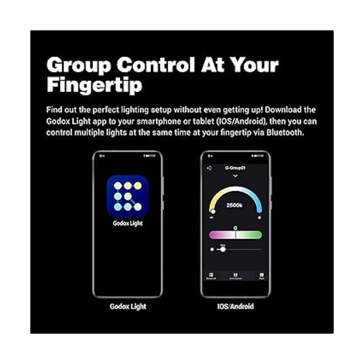 Control remoto magnético de carga automática: carga automática magnética de control remoto en la parte posterior del panel de luz, también se puede quitar y utilizar solo, adoptando tecnología de 2.4 G, el control remoto magnético desmontable puede ajustar el brillo y la temperatura de color para una configuración de iluminación precisa en tiempo real. Una vez que la transmisión está cerrada, puedes volver a colocarla en el panel de luz para cargarla automáticamente. Con la aplicación Godox Light puedes controlar varias luces al mismo tiempo al alcance de tu mano a través de Bluetooth.