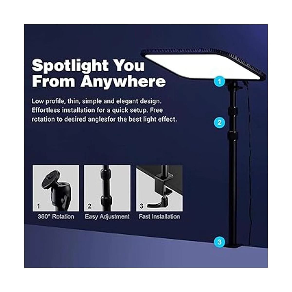 Panel de luz suave: suave para tus ojos, iluminación demasiado dura o desigual fatiga los ojos rápidamente, especialmente cuando necesitas centrarte en la pantalla durante mucho tiempo todos los días. Teniendo en cuenta el hábito desgastado de las serpentinas de deportes electrónicos, diseñamos esta luz para una fuente suave y el mejor ángulo de iluminación, lo que te aporta un brillo natural con el que tus ojos siempre están cómodos.