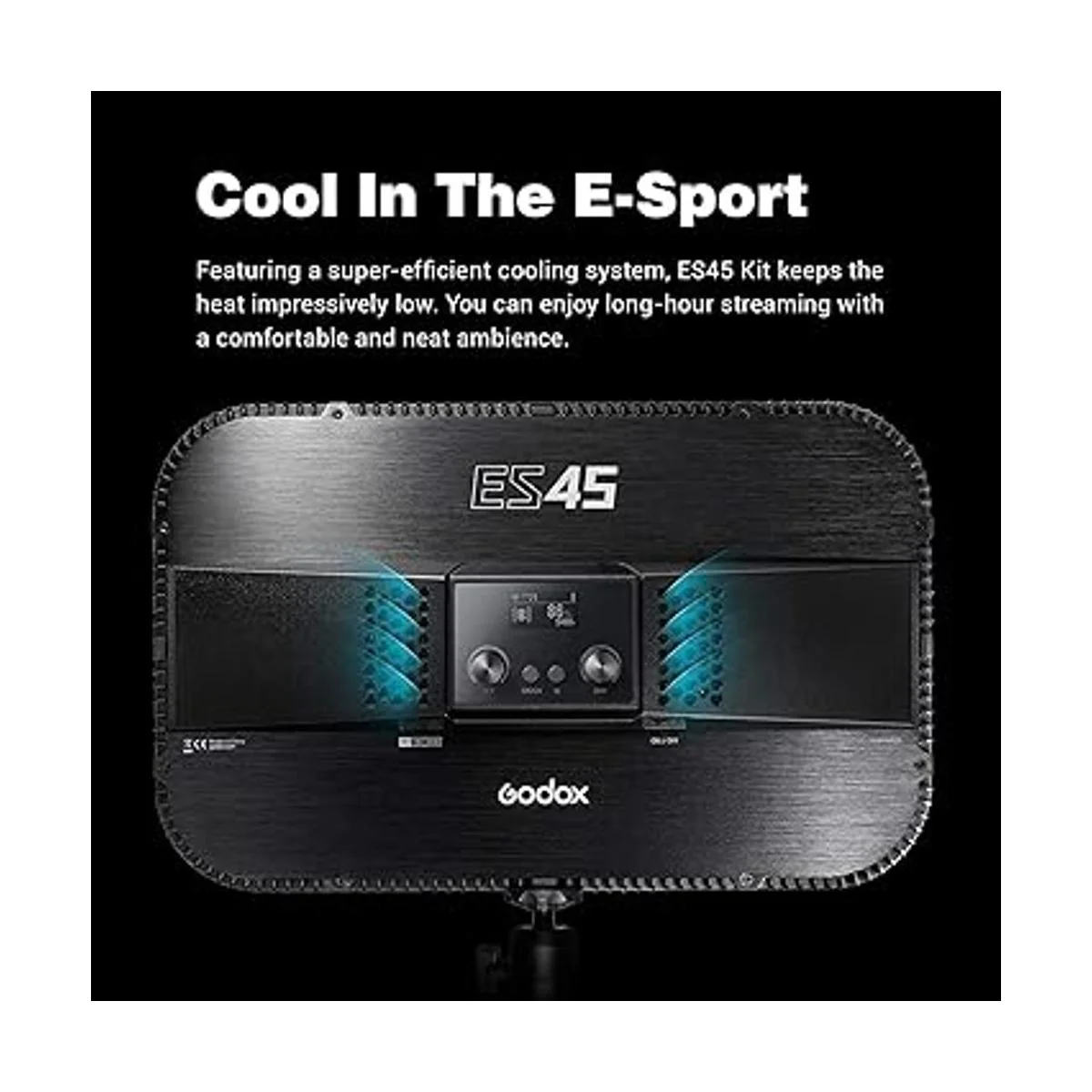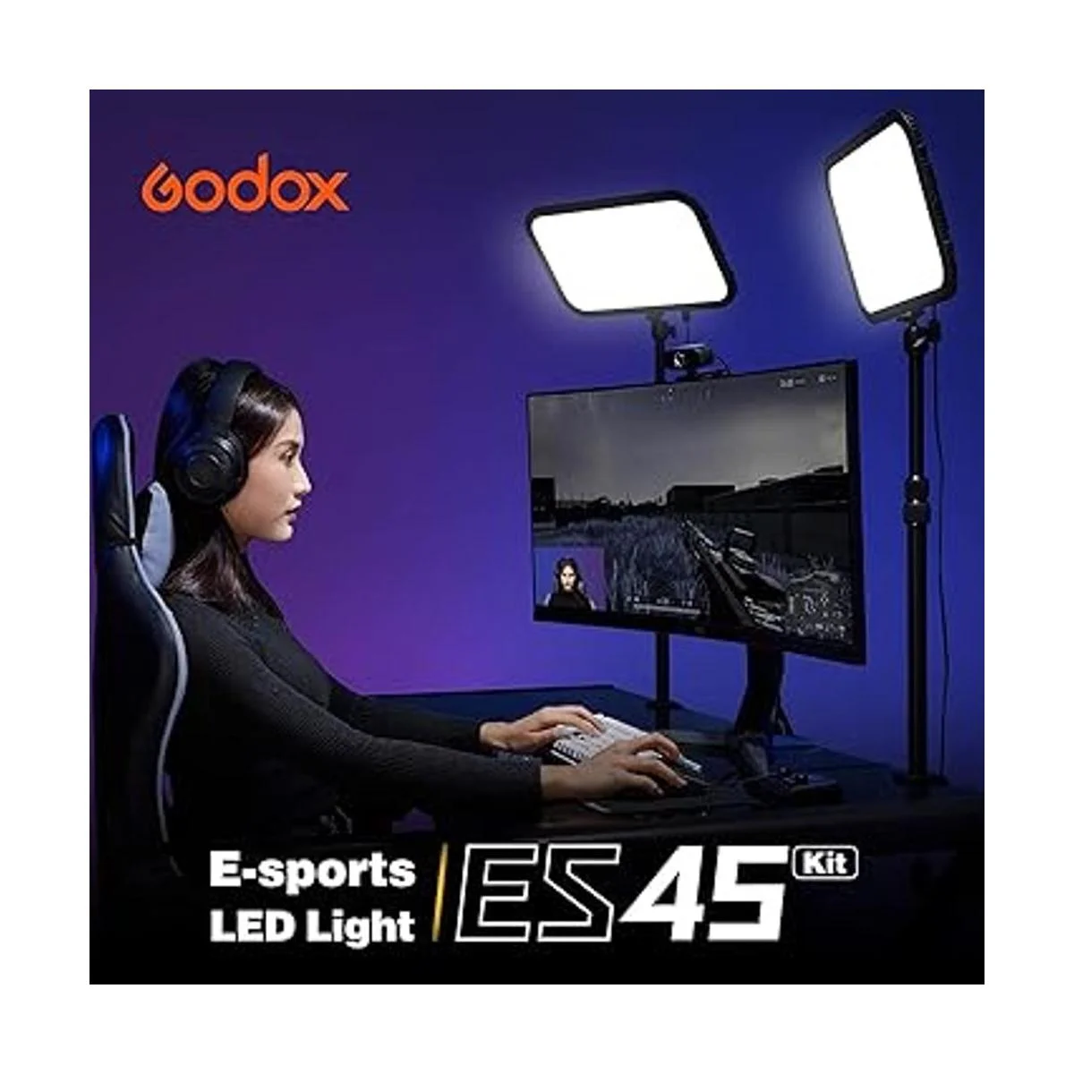 Godox Luz clave ES45, luz de video LED con soporte de escritorio extensible, 0100 de brillo y ajuste de temperatura de color de 28006500k, aplicación y control remoto, panel de luz suave para transmisión, llamadas de zoom y YouTube