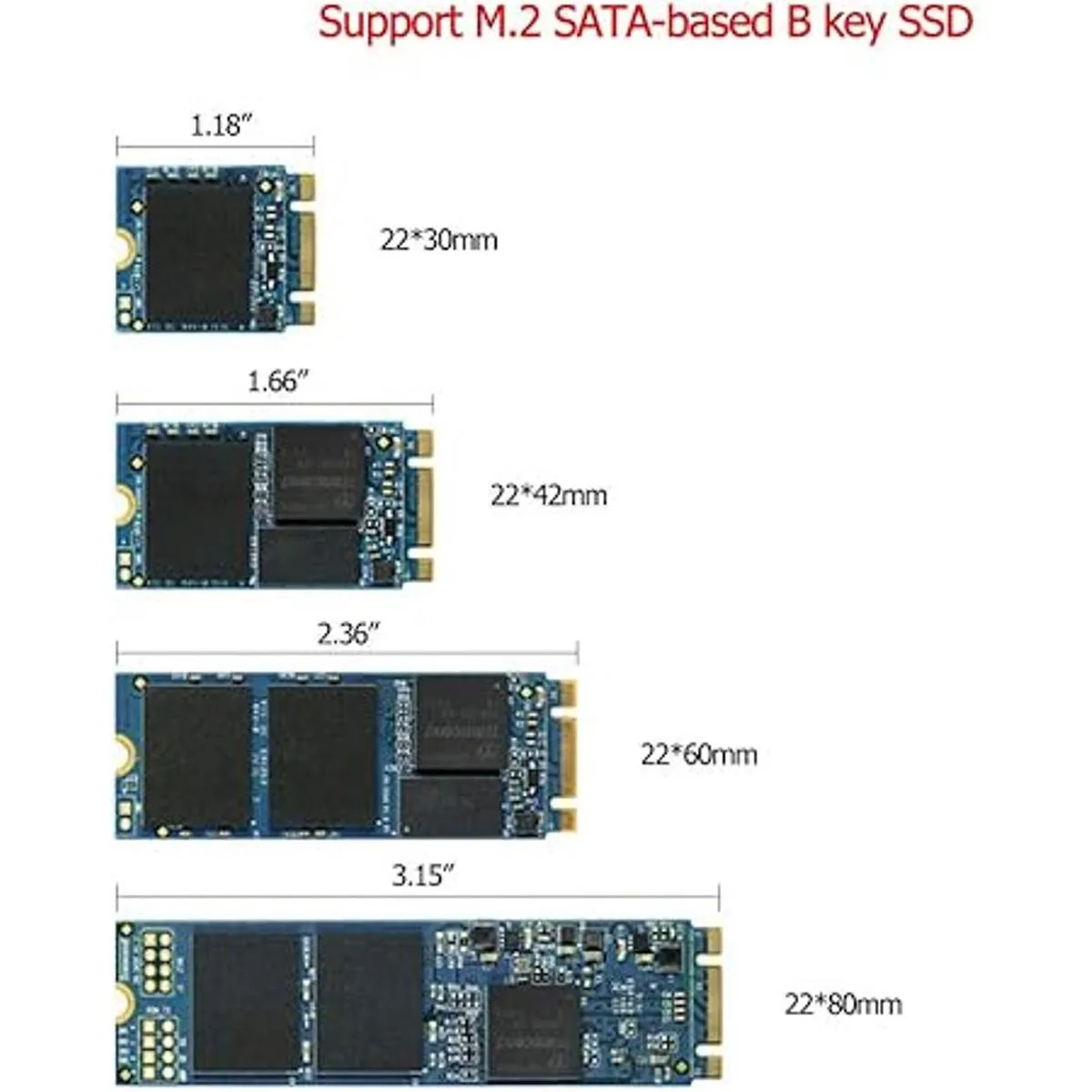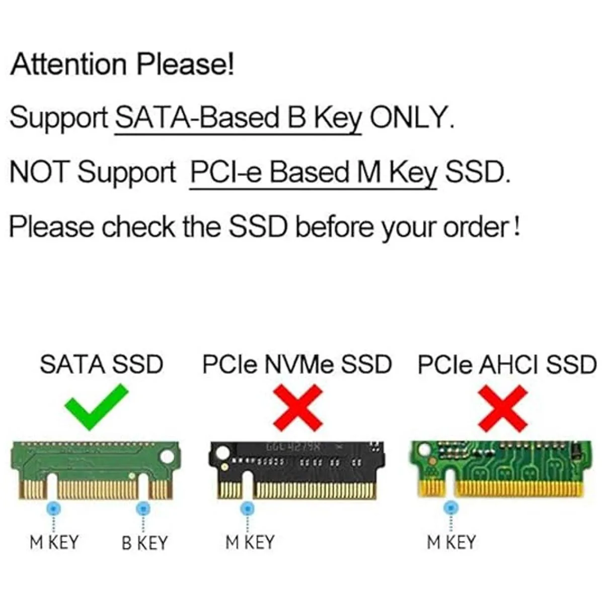 Compatible con 4 tamaños NGFF SSD: Tipo 2230, 2242, 2260, 2280. Solo soporta NGFF SATA B KEY SSD.