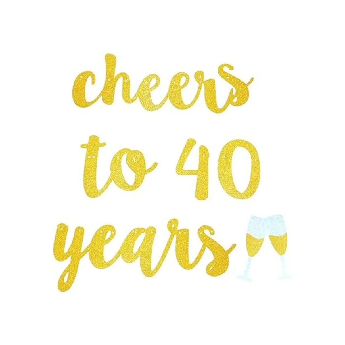 GOER Cheers to 40 years and Champagne Glasses Gold Glitter Banner para decoraciones de fiesta de cumpleaños 40