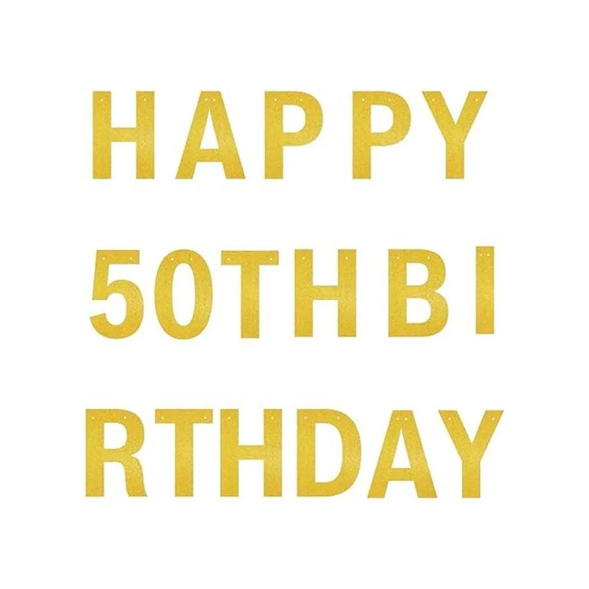 El paquete incluye: 1 pancarta de cumpleaños con purpurina dorada con texto en inglés Happy 50th Birthday, decora perfectamente tu fiesta de cumpleaños 50 y da una profunda impresión a todos