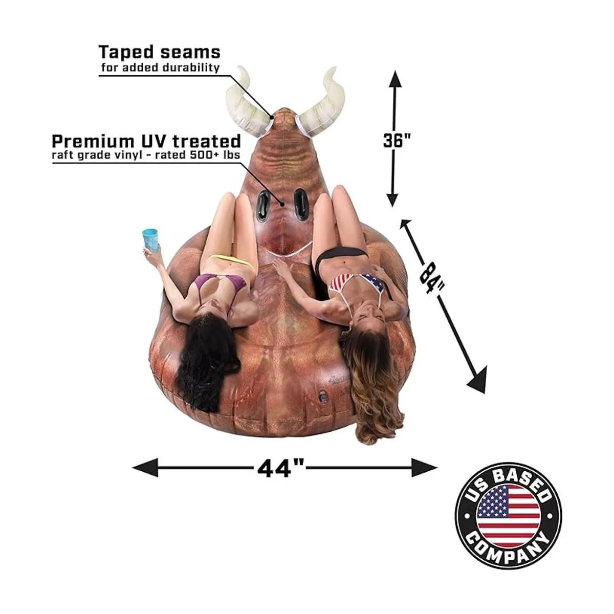 GoFloats Giant Inflatable Buckin Bull Grab Summer by The Horns, Includes Bonus Drink Float