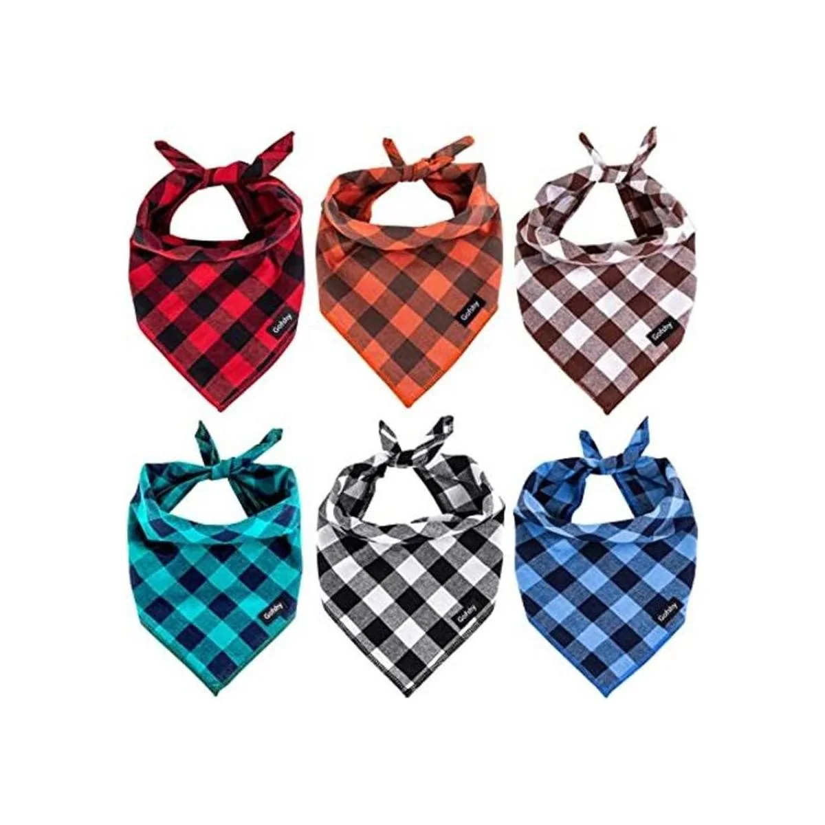 Gofshy Bandanas para perro, 6 unidades, regalos para perros, rojo, azul, verde, naranja, negro, marrón, bufanda a cuadros, bufanda ajustable para perros, pañuelo, para perros pequeños, medianos y grandes, bandanas para cachorros