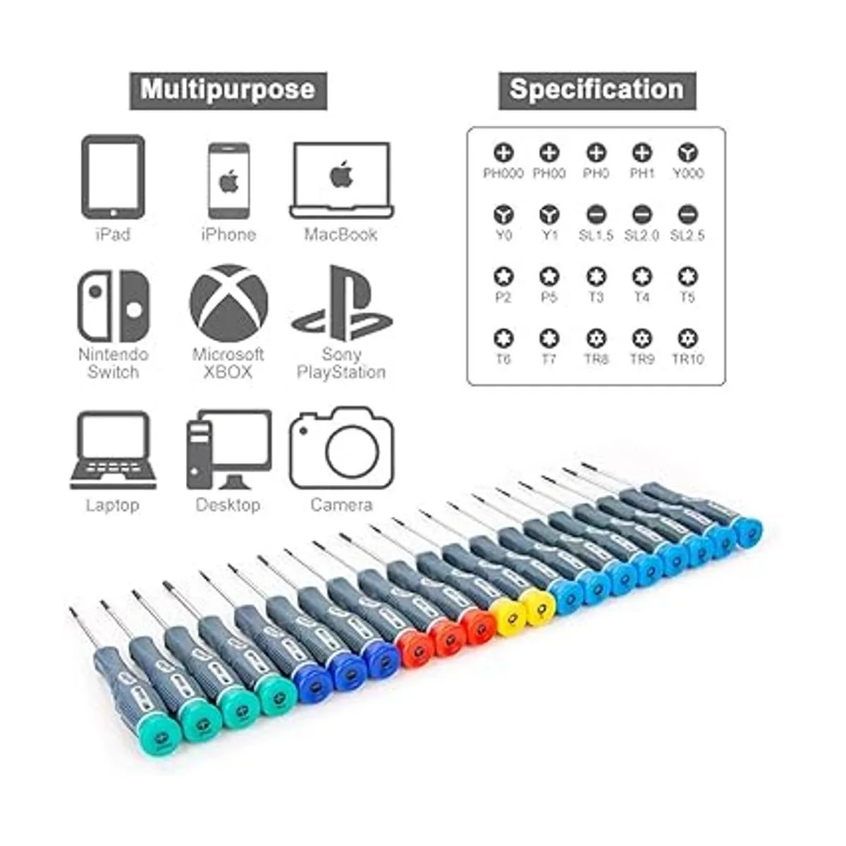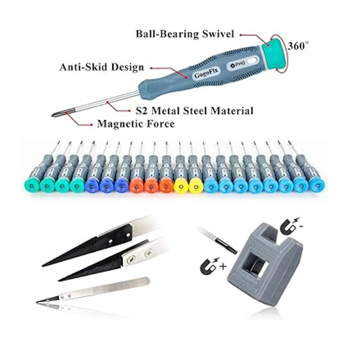 GogoFix Kit de herramientas de destornillador de precisión compatible con electrónica, computadora, laptop, teléfono, almohadilla, consola de juegos, reparación y mantenimiento de cámara, 20 piezas