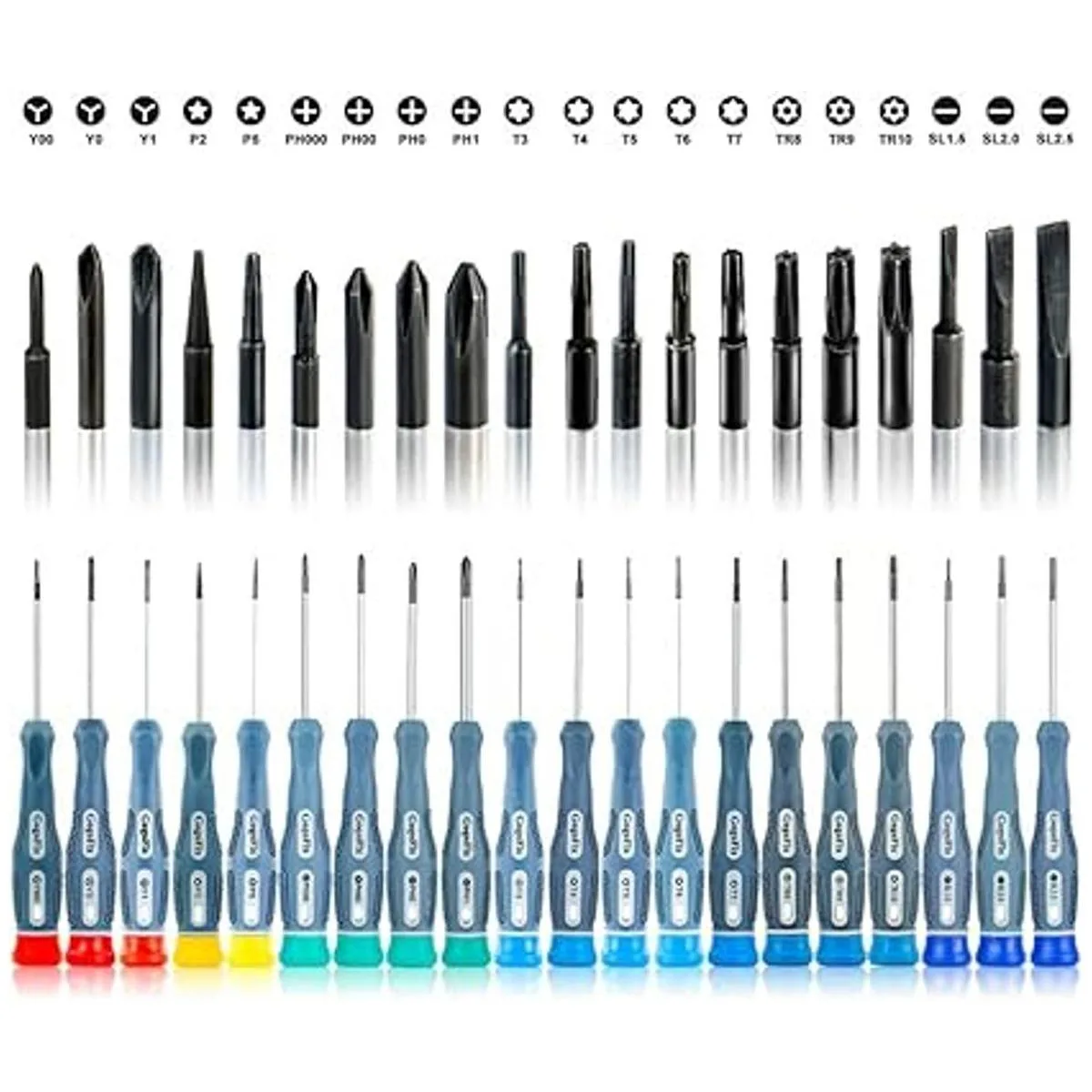 Juego de destornilladores profesionales para reparación y mantenimiento de pequeños aparatos electrónicos. Destornilladores esenciales para todos los desmontar, reparar y volver a montar tus dispositivos electrónicos.