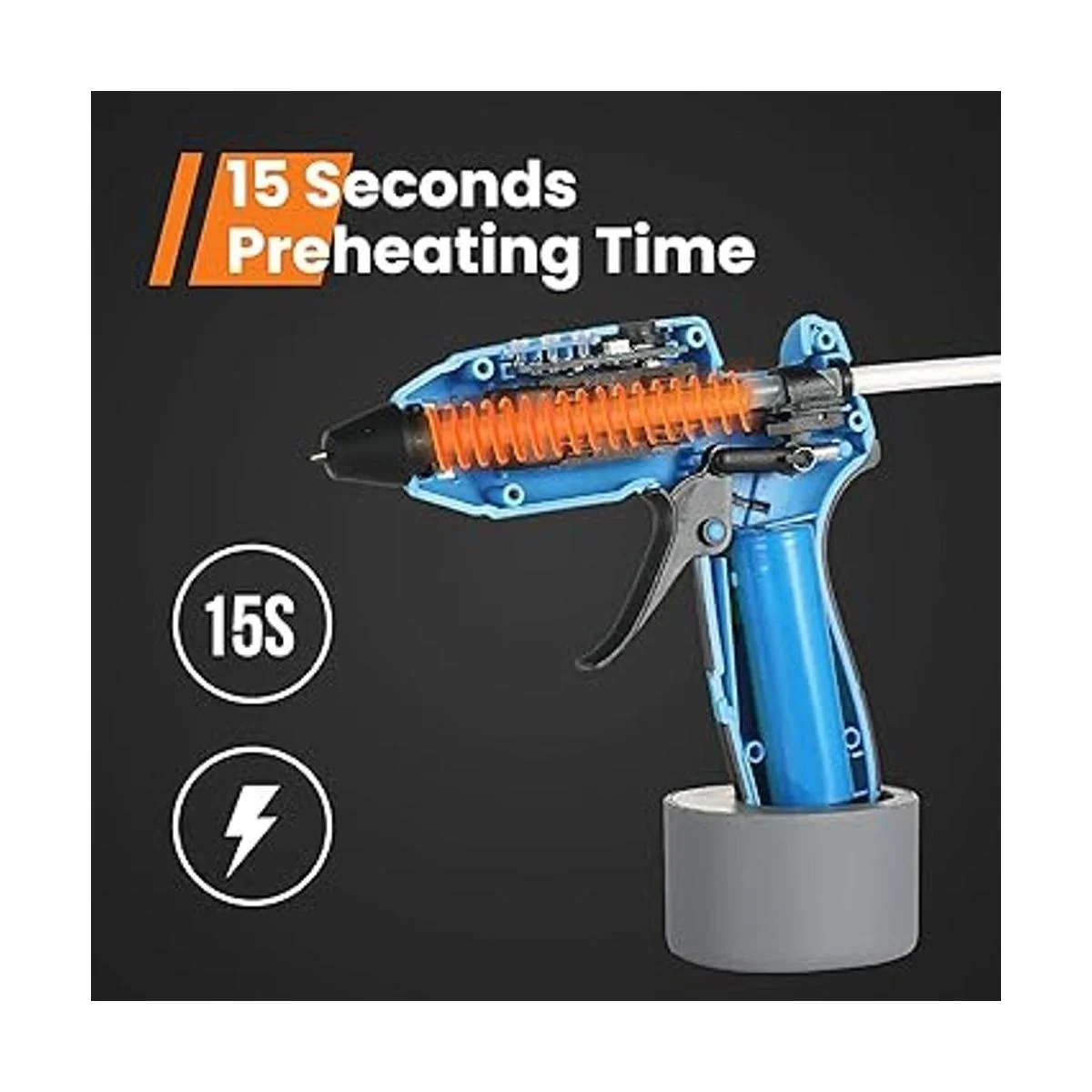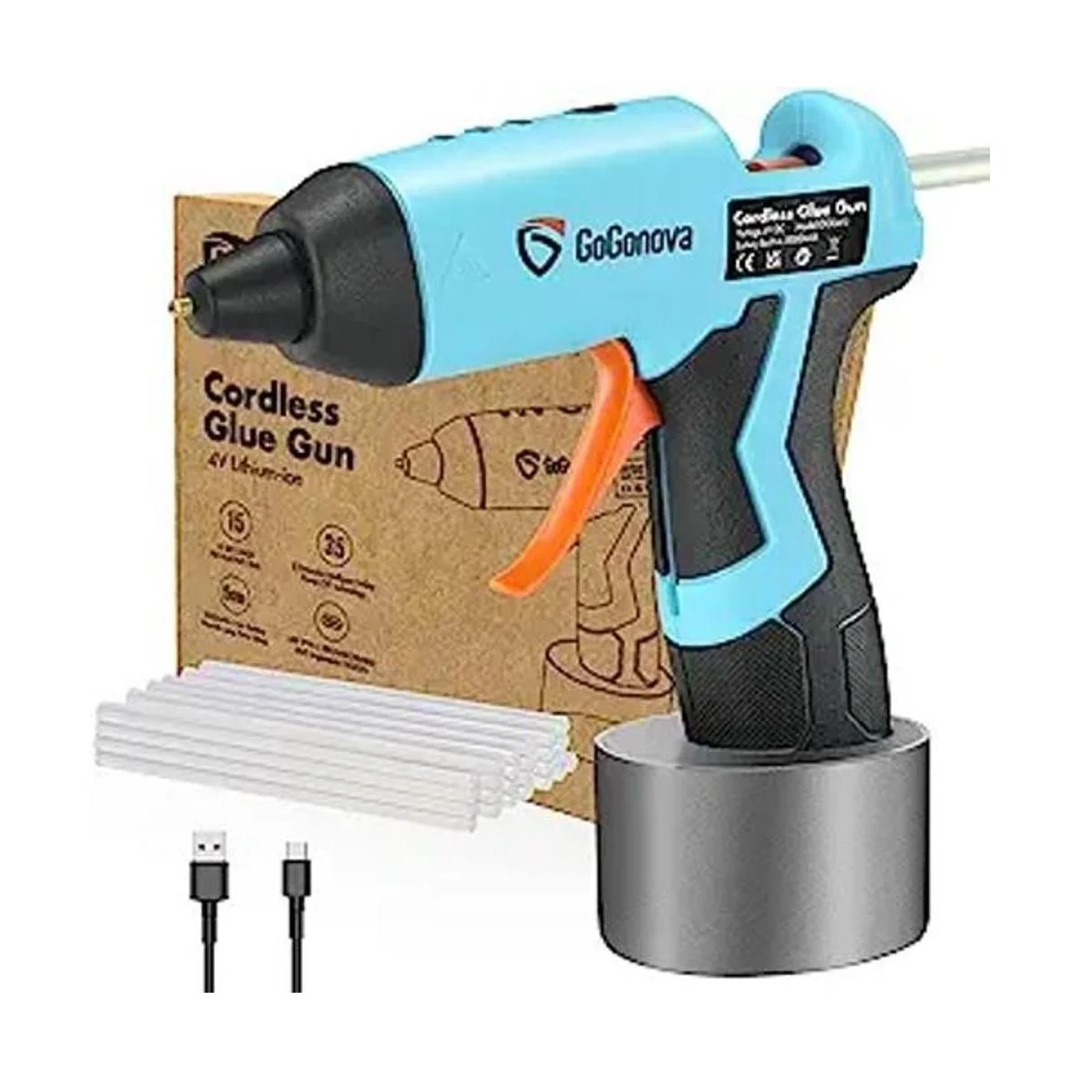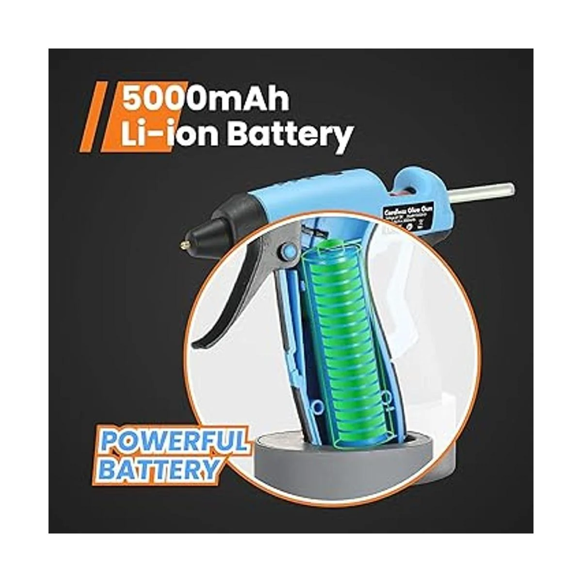 GoGonova Pistola de pegamento de precalentamiento rápido de 15 segundos, pistola de pegamento termofusible de batería incorporada de 5 Ah, apagado inteligente, kit con 25 mini barras de pegamento premium y puerto de carga USBC