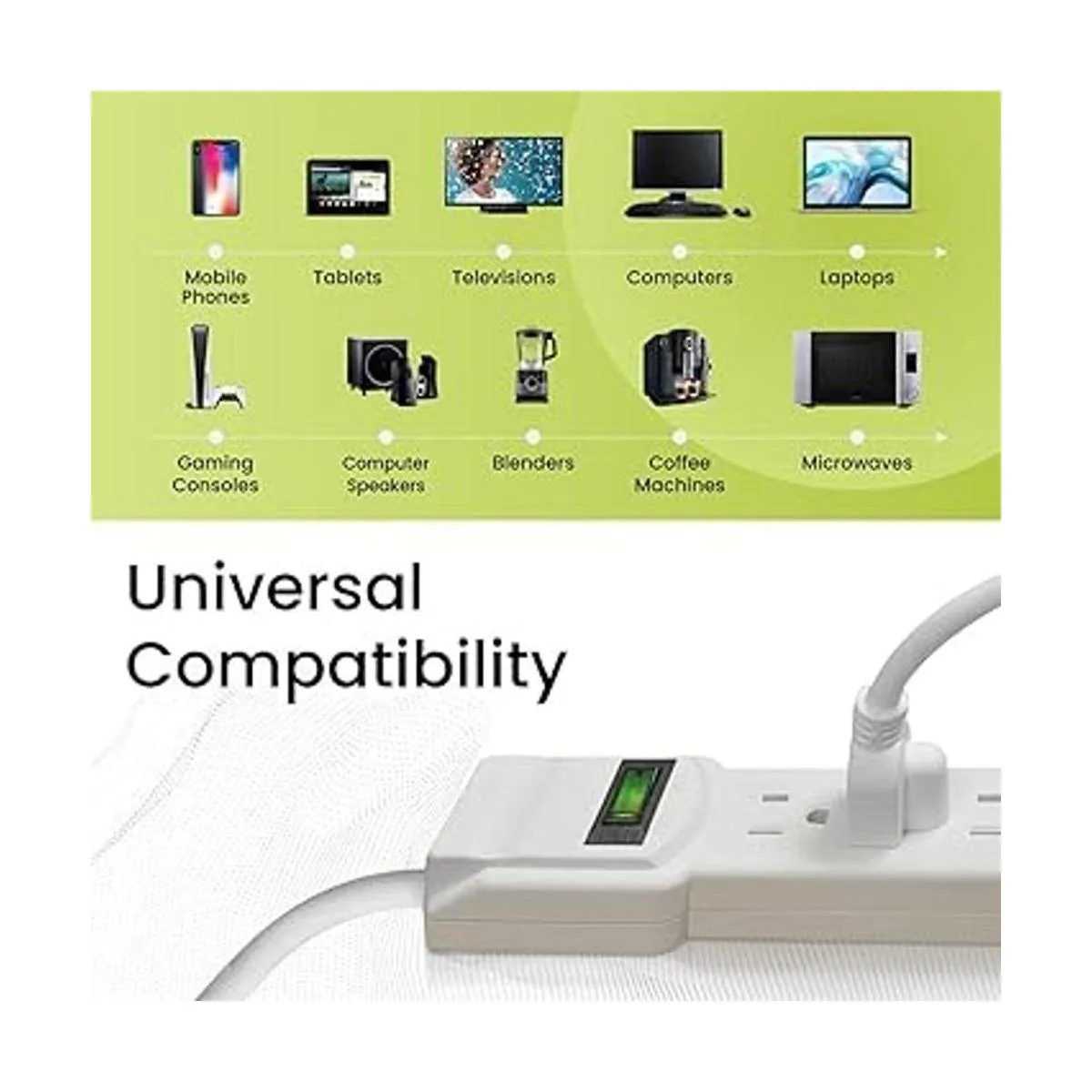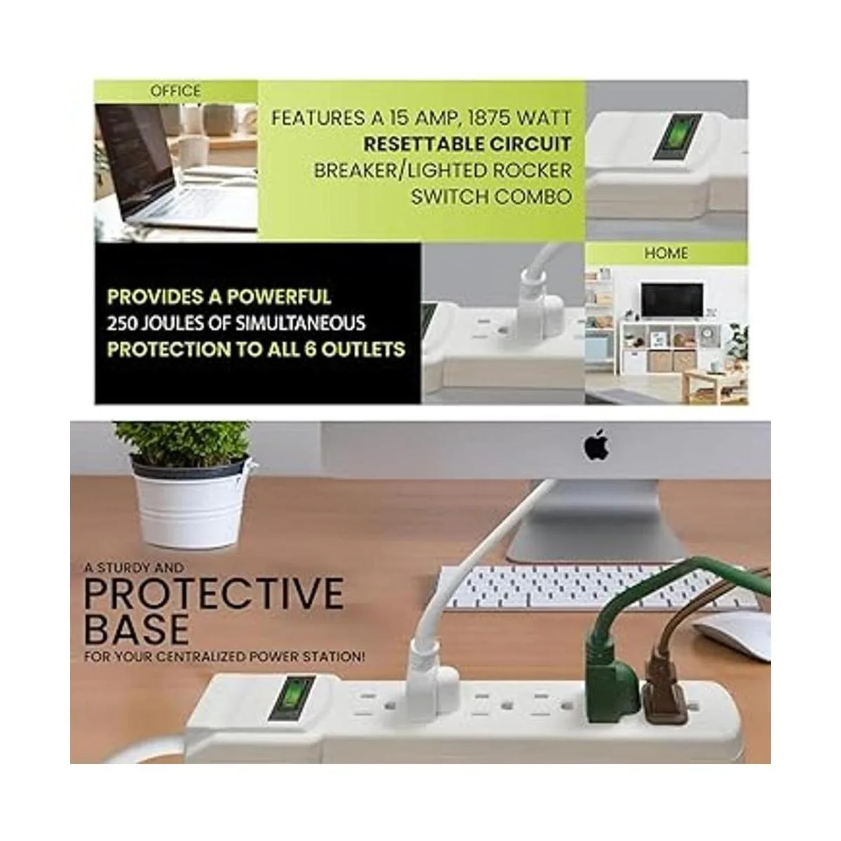Protector de sobretensiones de 6 tomas: proporciona 250 julios de protección simultánea contra sobretensiones de energía eléctrica para sus 6 adaptadores, todo a la vez, por lo que es ideal para casi cualquier electrodoméstico interior