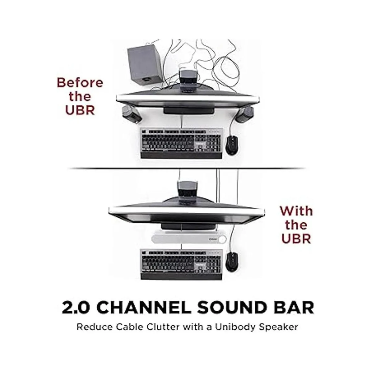Elegante audio de barra de sonido para tu computadora: el altavoz UBR utiliza conexiones por cable para una compatibilidad universal y cuenta con un diseño de barra de sonido de perfil bajo para liberar espacio en el escritorio y reducir el desorden de cables