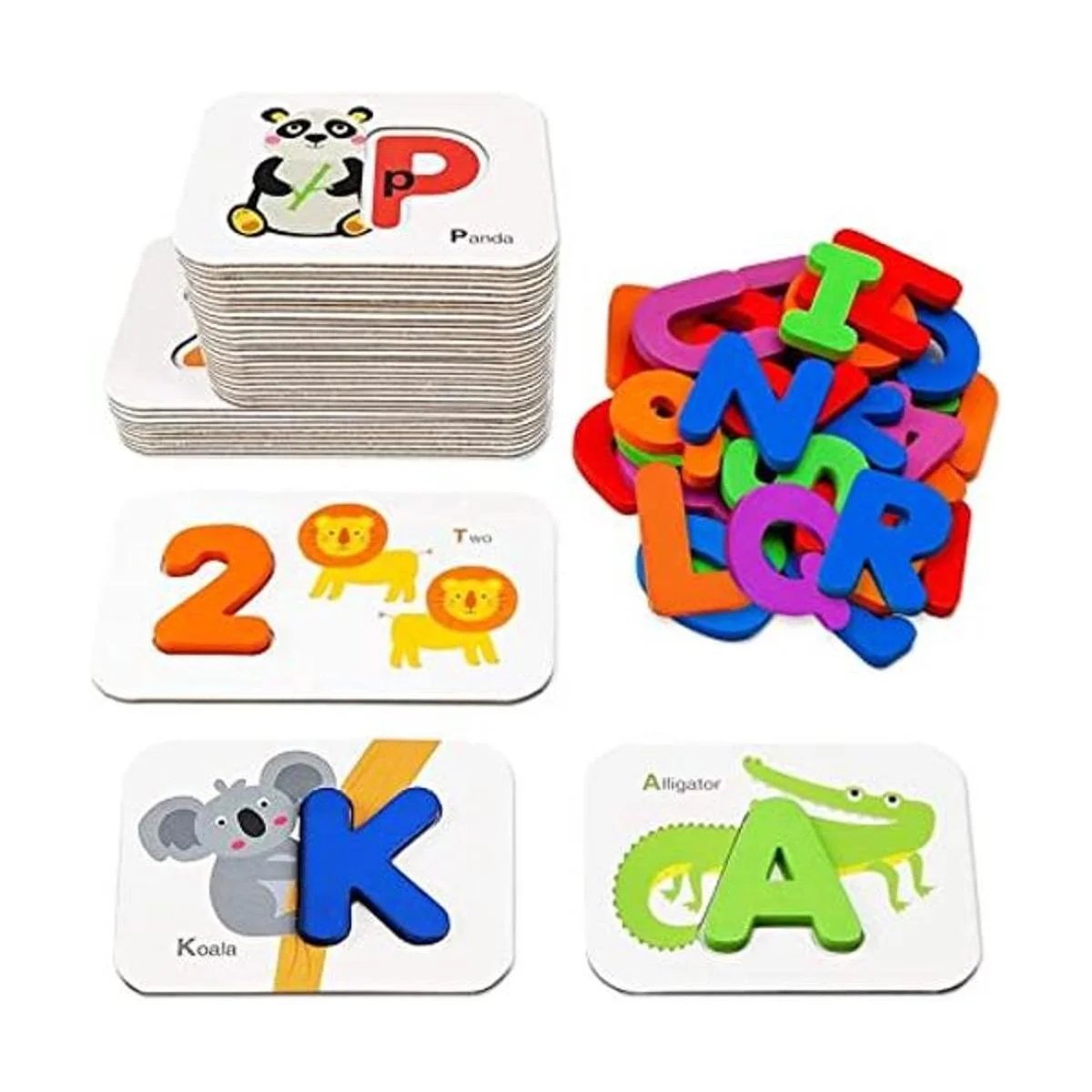 Gojmzo Tarjetas flash de números y alfabeto para niños pequeños de 3 a 5 años, juguetes educativos Montessori ABC regalos para actividades de aprendizaje preescolares de 3, 4, 5 años, letras y números de madera, tarjeta de identificación de animales
