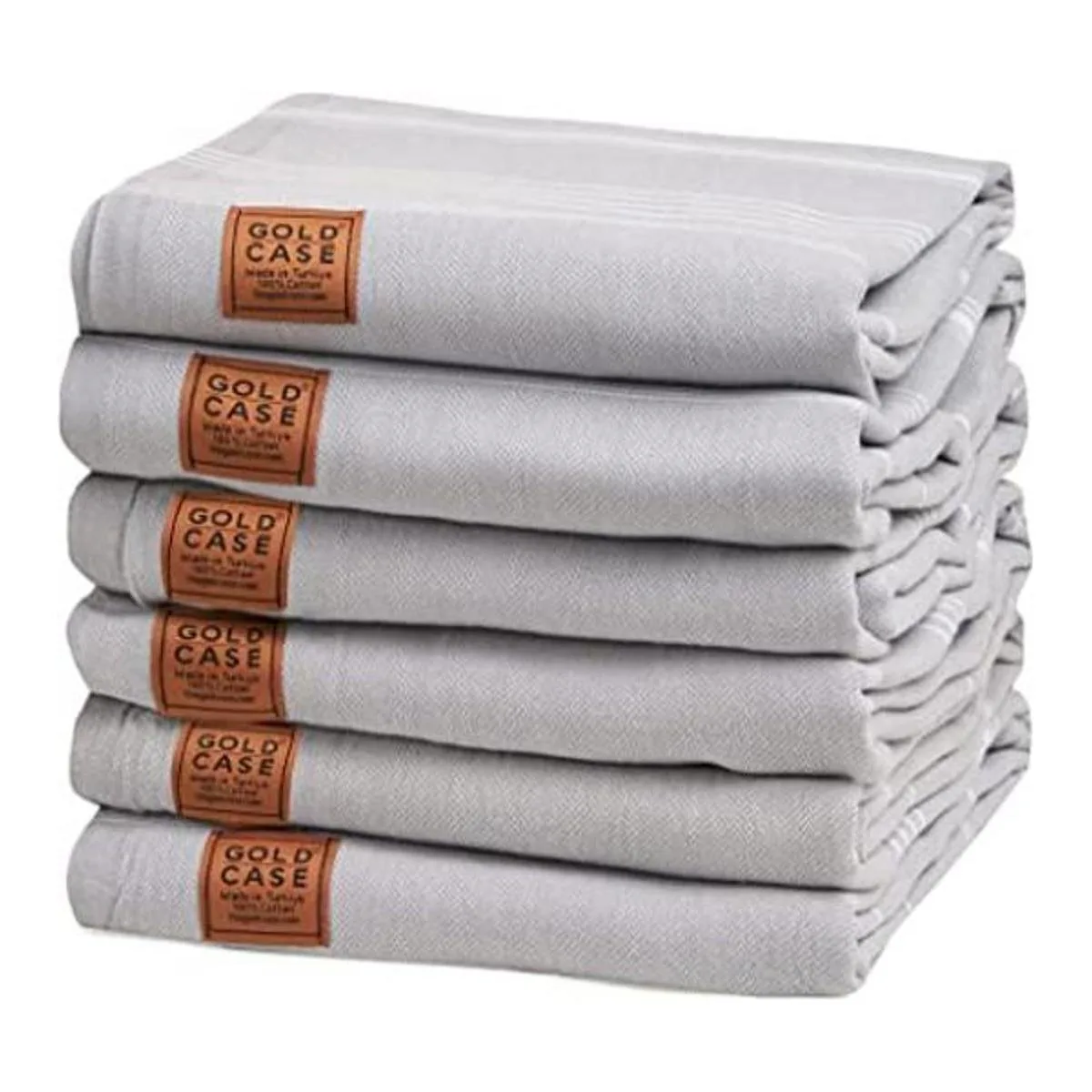 GOLD CASE Juego de 6 toallas turcas de baño, vintage, XXL, de 70 x 39 pulgadas, 100 algodón natural, secado superrápido, ultraligeras; para playa, spa, piscina, gimnasio, yate, picnic Lycia color gris
