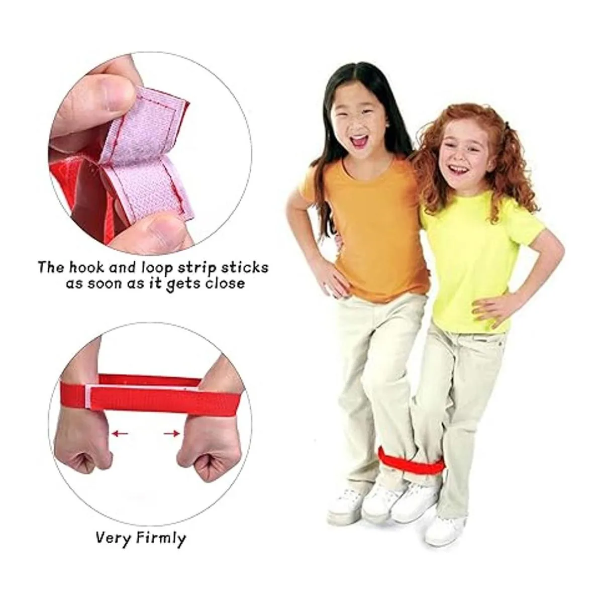 Bandas de carreras resistentes de 3 patas: las bandas de carreras de 3 patas, con la tira de velcro, se pegan tan pronto como se acercan. La visibilidad de las bandas mágicas es genial y no se suelta durante el proceso de movimiento. Además, es fácil de poner y quitar. Adecuado para que los niños lo usen a diferentes edades en juegos de patio.