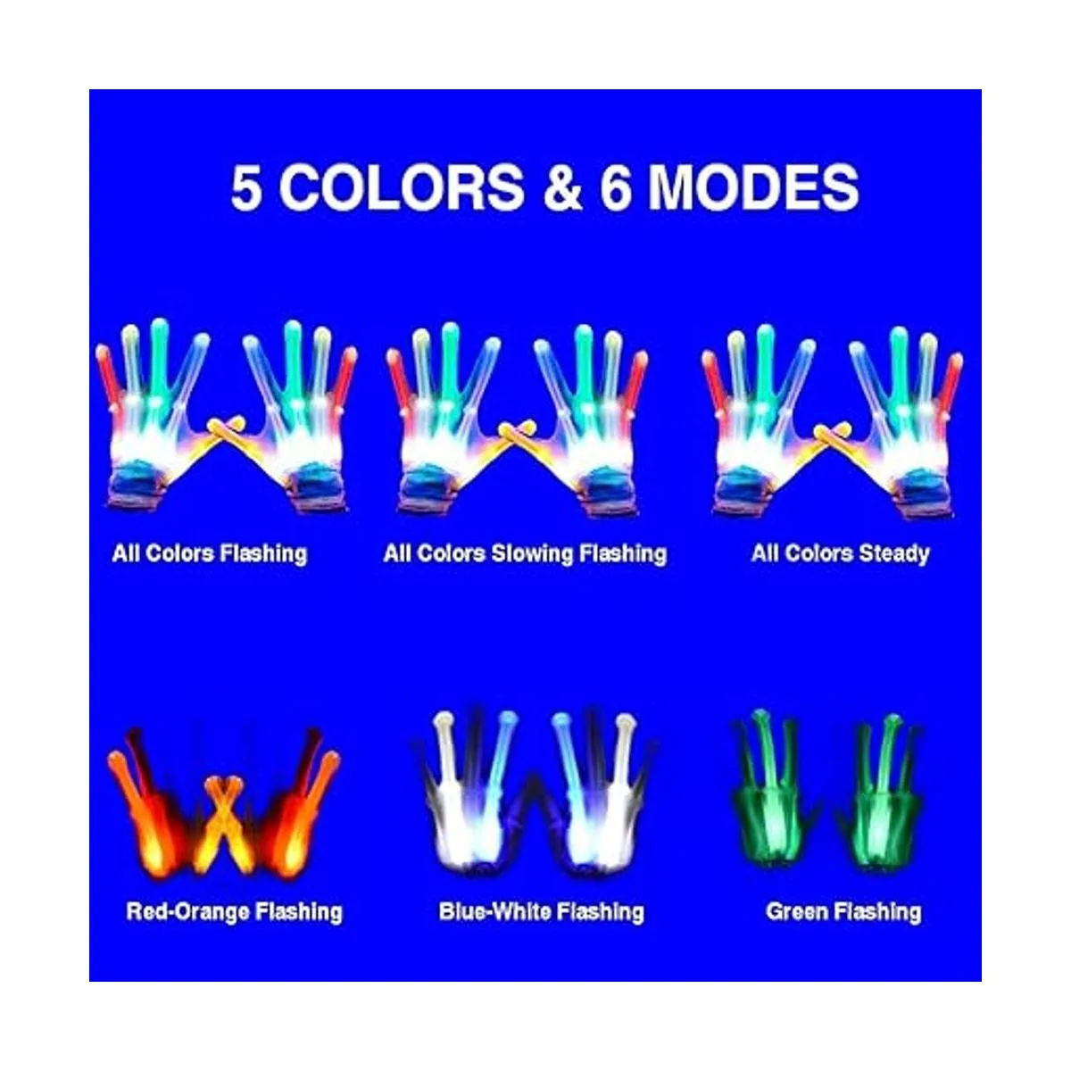 Ama todas las cosas que se iluminan. Nuestros guantes multicolor brillantes con luz intermitente son perfectos para regalos de cumpleaños de niños, regalos de Pascua, rellenos de calcetines, luces de Halloween, regalos de Navidad, regalos de fiesta, regalos de Acción de Gracias. Múltiples escenarios de aplicación, accesorios de disfraces, disfraces de baile, disfraces de patinaje sobre hielo, luces de patinaje, luces de hockey, juegos, eventos escolares, etc.