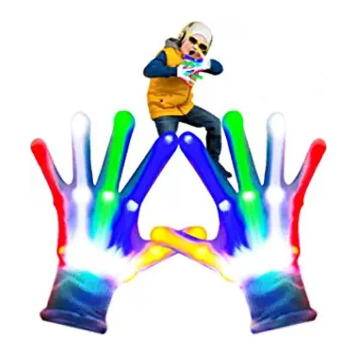 GOLEDLF Juguetes geniales y divertidos para niños de 3 a 6 años, guantes LED parpadeantes de arcoíris para disfraces, club, fiesta, cumpleaños, Halloween, Navidad, carnaval