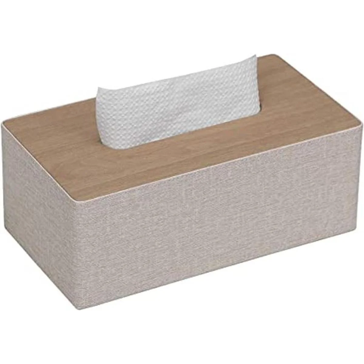 GOLRANLYE Funda rectangular para caja de pañuelos de 9.8 pulgadas de largo x 5.3 pulgadas de ancho x 4.3 pulgadas de alto, soporte de caja dispensadora de pañuelos faciales de cuero sintético moderno refinado para tocador y baño decorativo beige