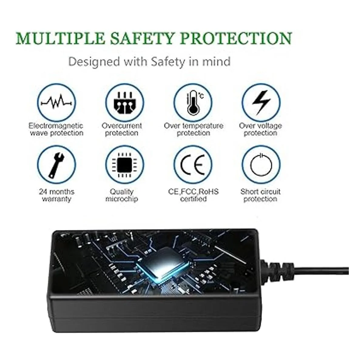 Protección segura: certificado CE FCC y RoHS, tiene protección contra sobretensión, protección contra sobrecalentamiento, sobrecarga y cortocircuitos.
